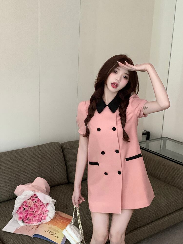 Xiaoxiangfeng puff sleeve dress women's summer 2022 new doll collar small design sense color matching skirt サマー 夏物 スカート 0921991564057086