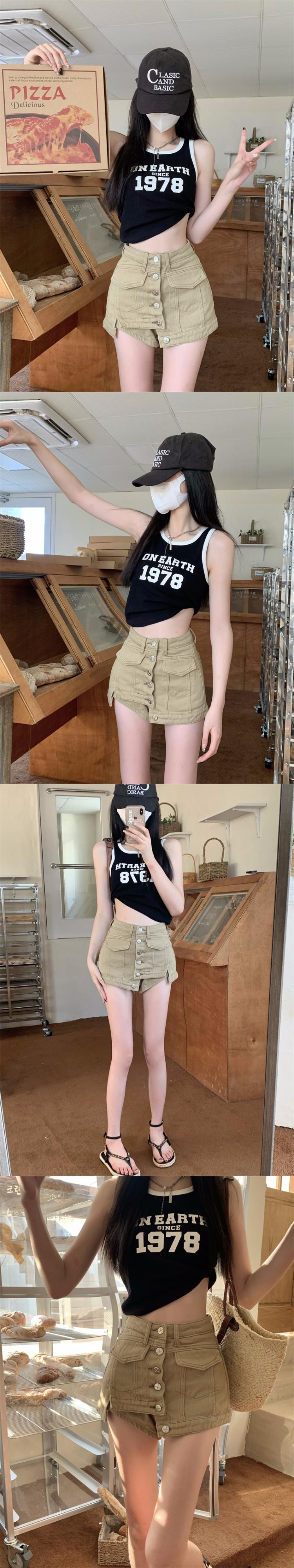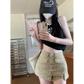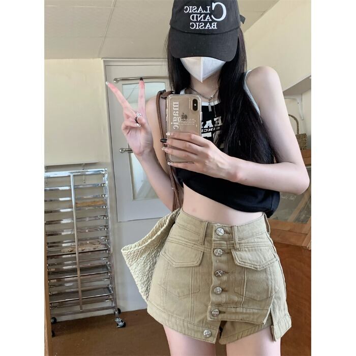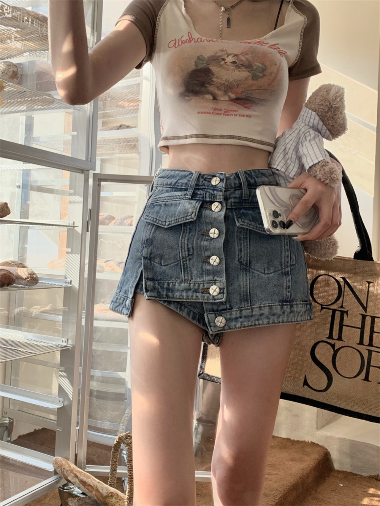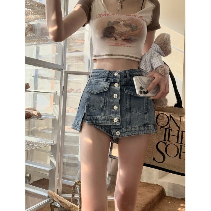 Hot tooling jeans women's summer pants 2022 new design breasted shorts skirt high waist slim pants ハイウェスト サマー 夏物 ショーツ ブルマー スカート スリム 0921964984625769