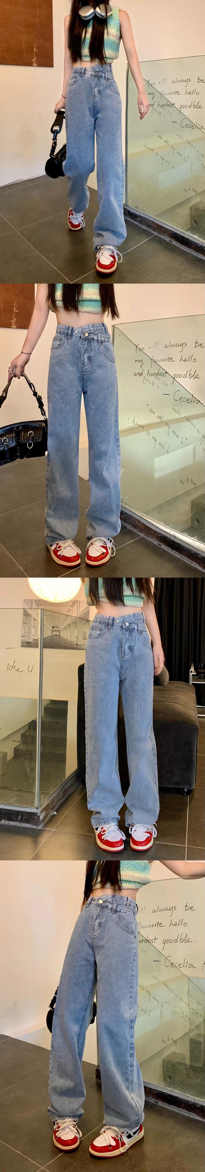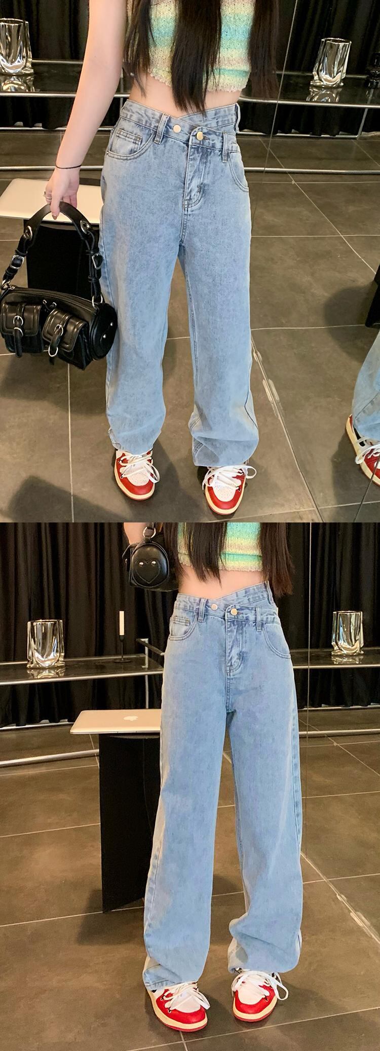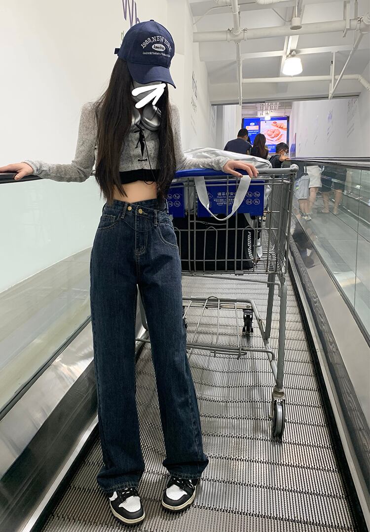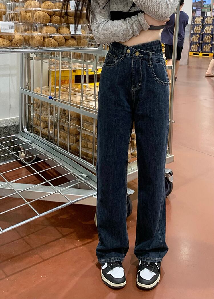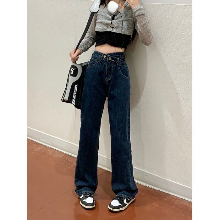 Irregular design high-waisted straight-leg jeans women's autumn 2022 new loose and thin wide-leg pants オータム 秋物 0921951390477209