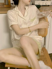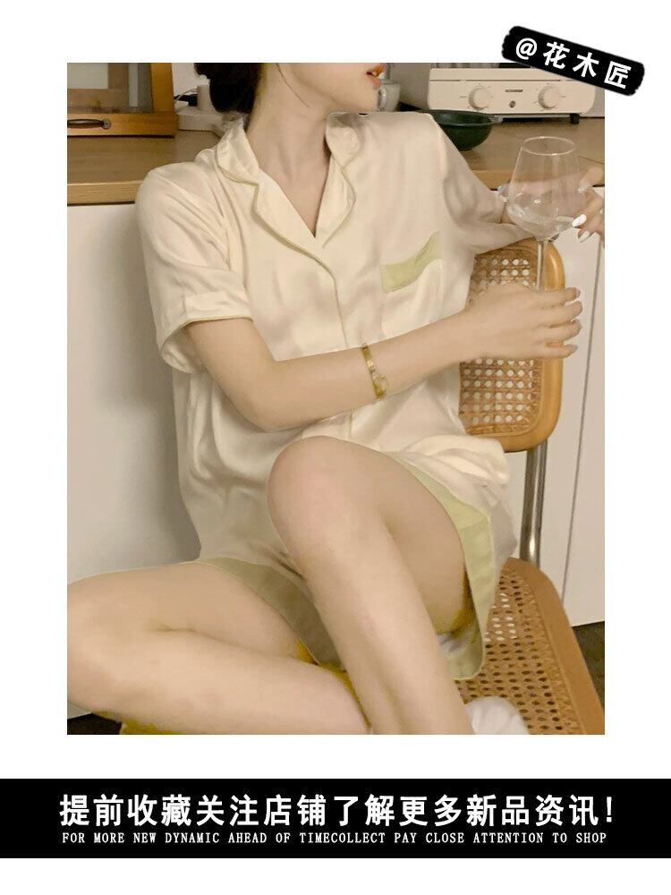 Net red thin section contrast color short-sleeved pajamas women's summer two-piece set 2022 new loose can be worn outside the home clothes suit レッド サマー 夏物 092194331898029