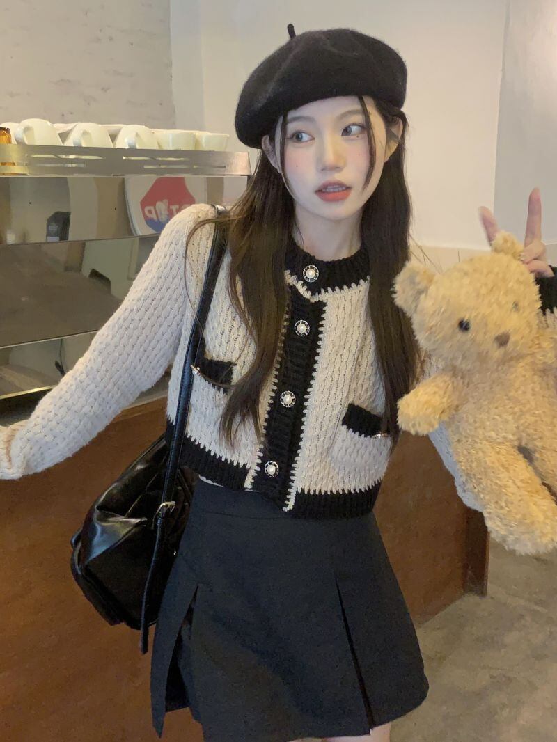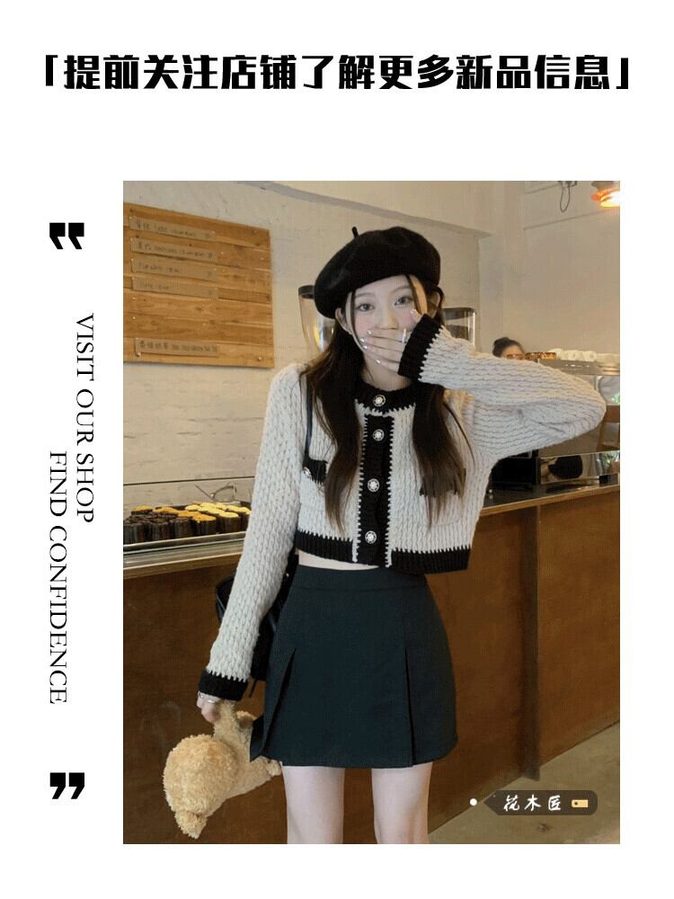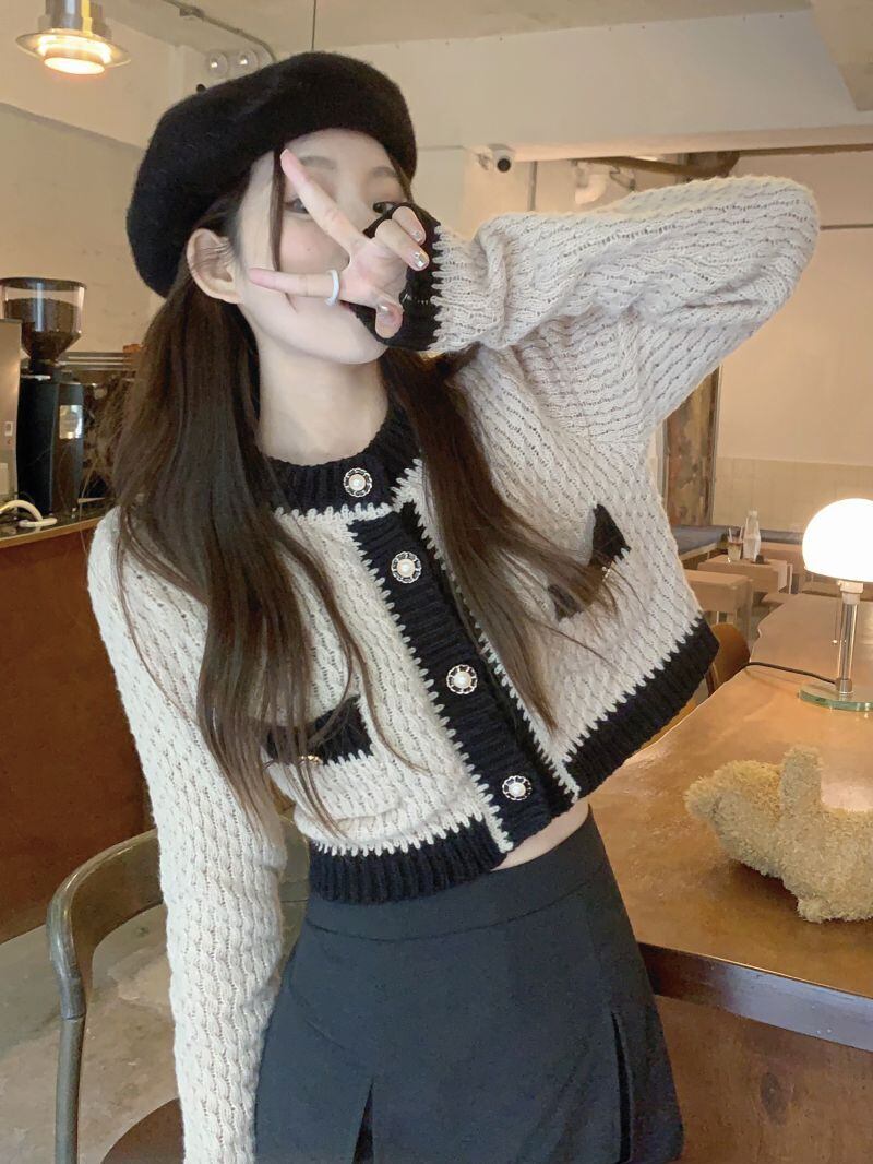 Chic little fragrant wind twist color sweater coat women's autumn 2022 new temperament long-sleeved short cardigan top ショート ロング カーディガン オータム 秋物 0921951973439795