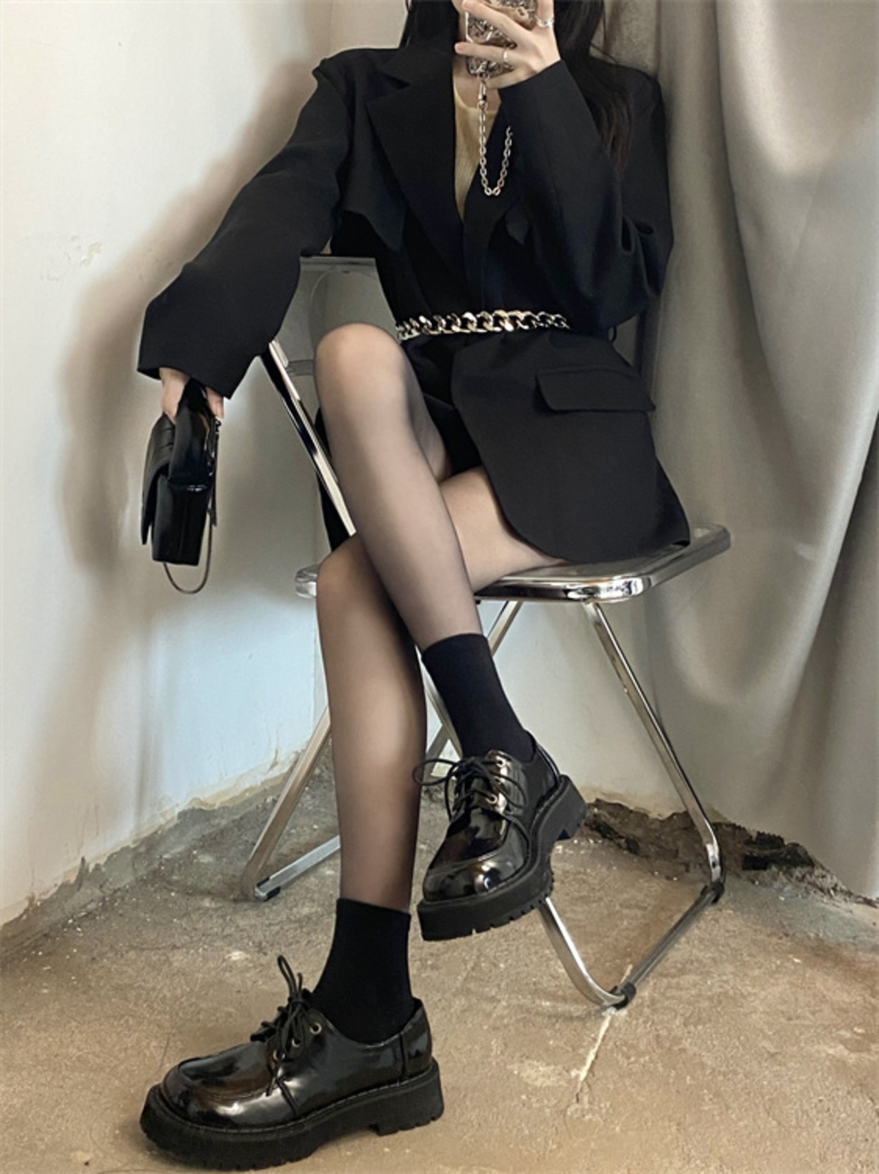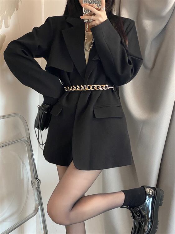 Temperament retro fashionable suit jacket female autumn 2022 new mid-length loose and thin long-sleeved black suit ロング ブラック レトロ オータム 秋物 092198139760335