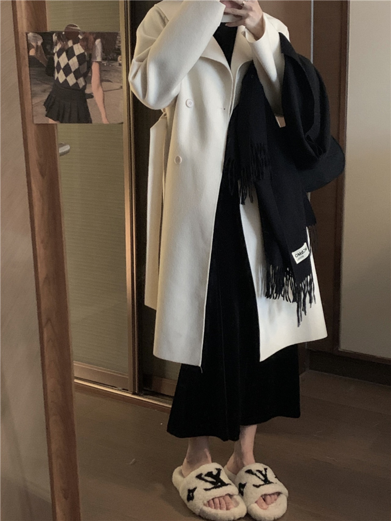 version mid-length beige small woolen coat women's autumn 2022 new fashion loose woolen coat オータム 秋物 0921968666537684