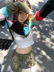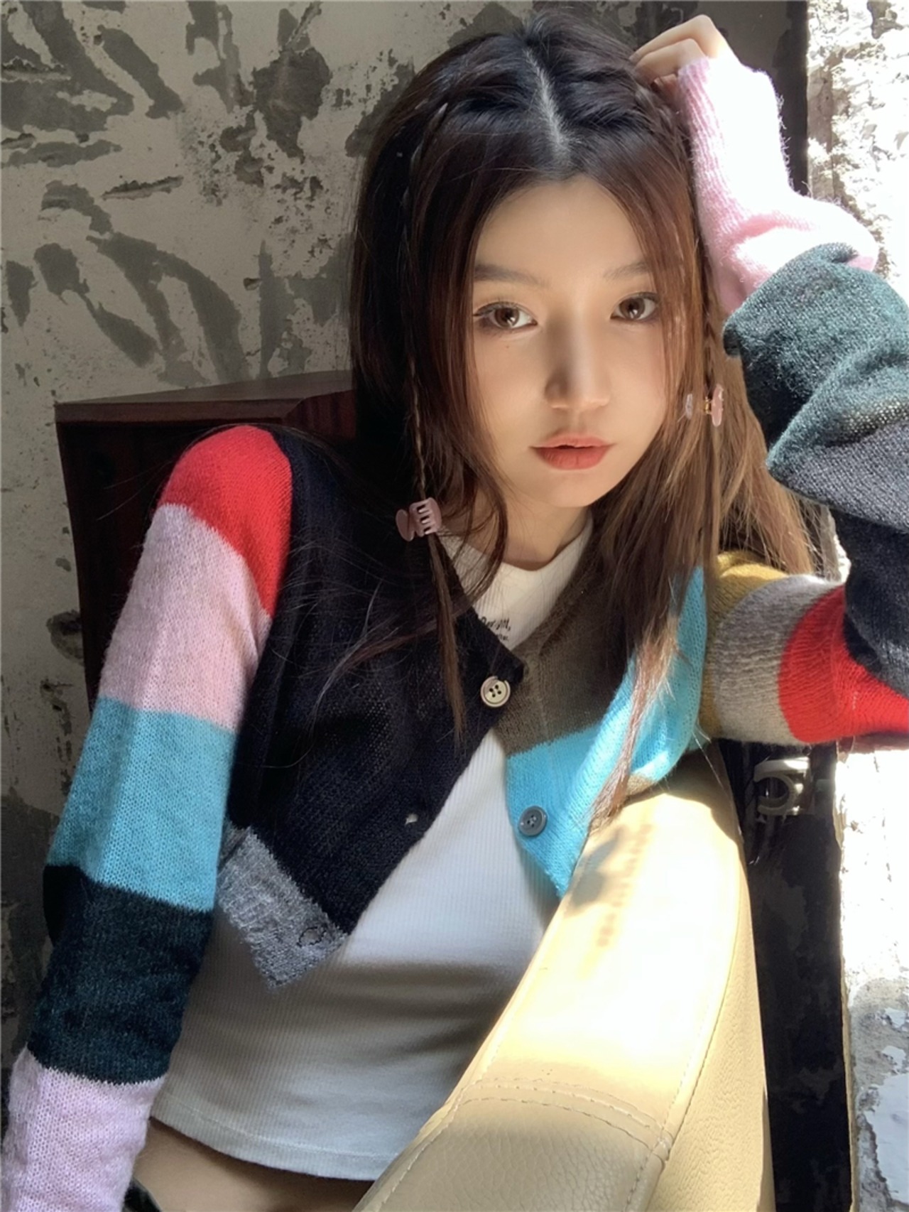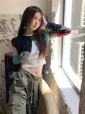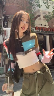 sense niche color contrast long-sleeved sweater women's autumn 2022 new slim all-match short sweet and spicy top ショート ロング 大人ガーリー スウィート キュート カジュアル オータム 秋物 スリム 092194838801991