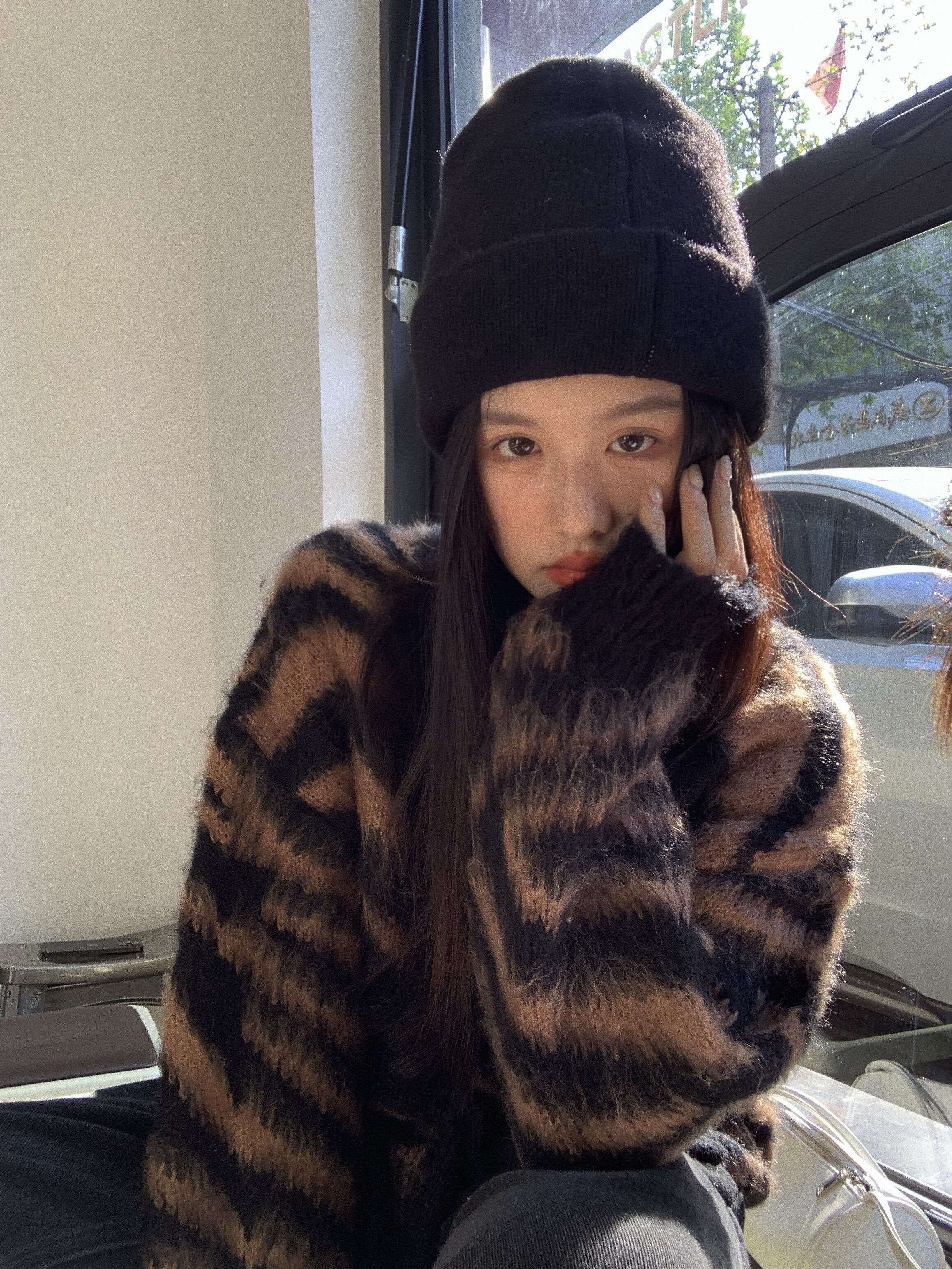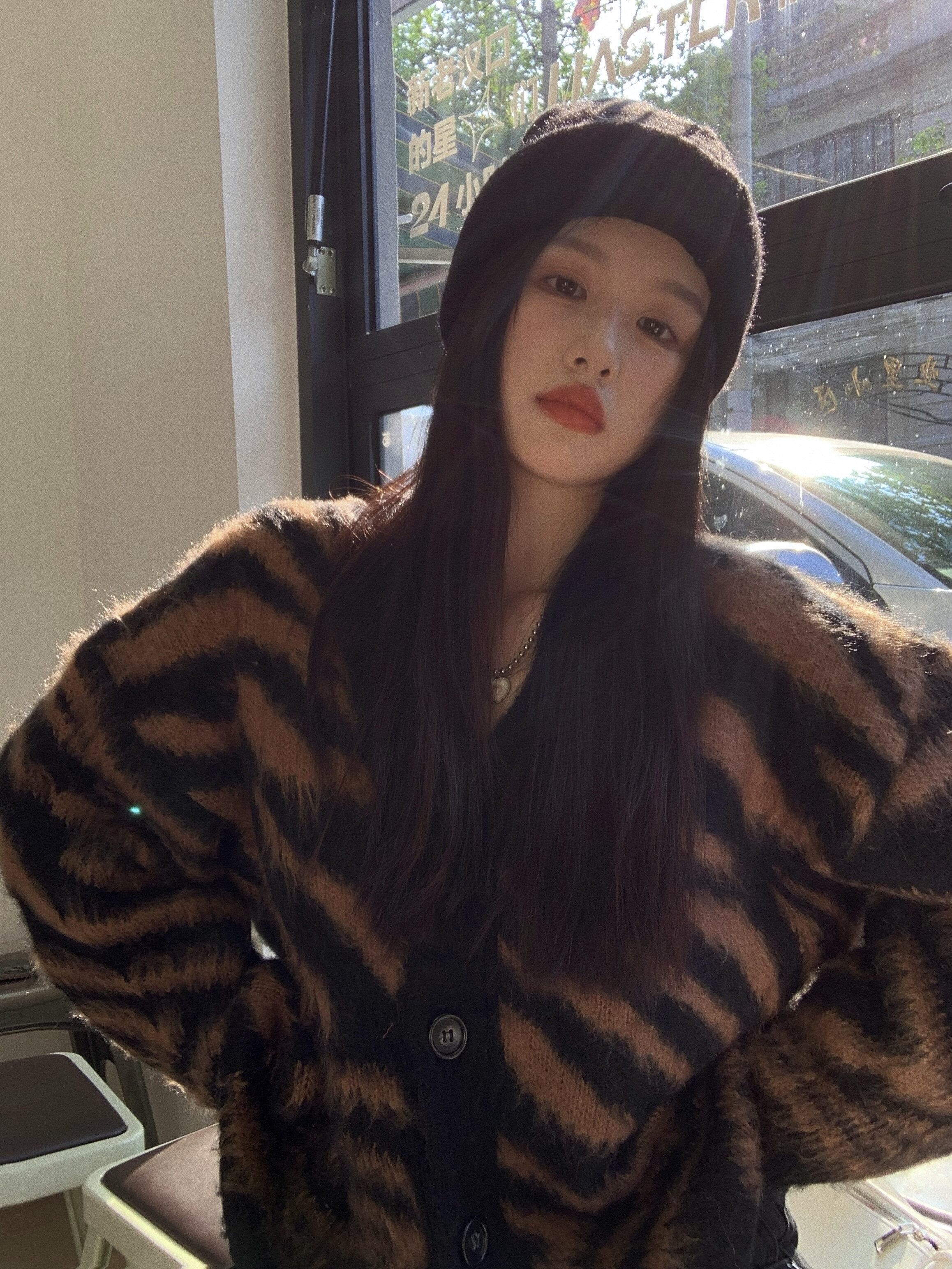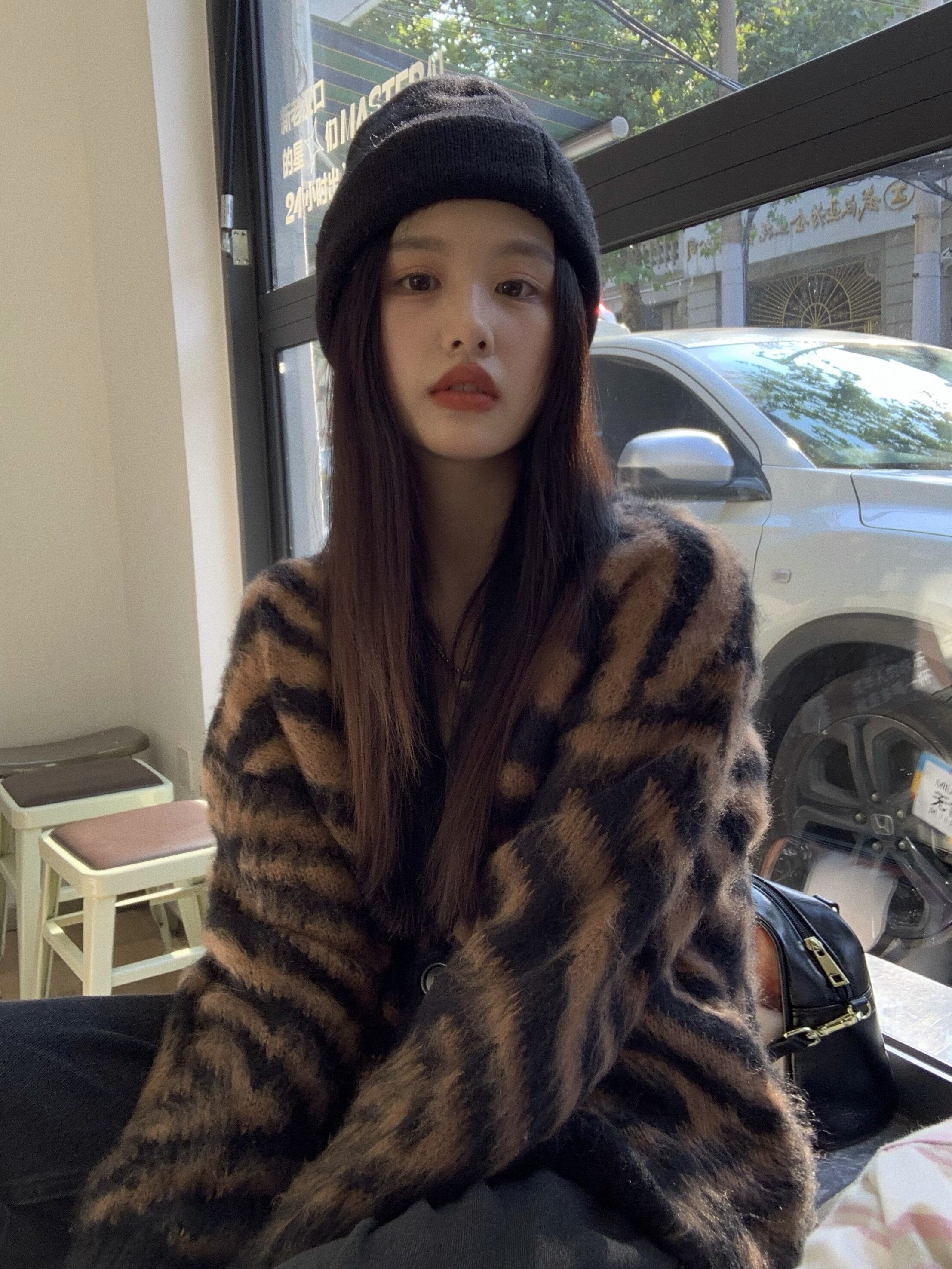 Autumn zebra pattern thickened V-neck sweater coat women's 2022 new design small loose knitted cardigan カーディガン オータム 秋物 Vネック 0921933622417458