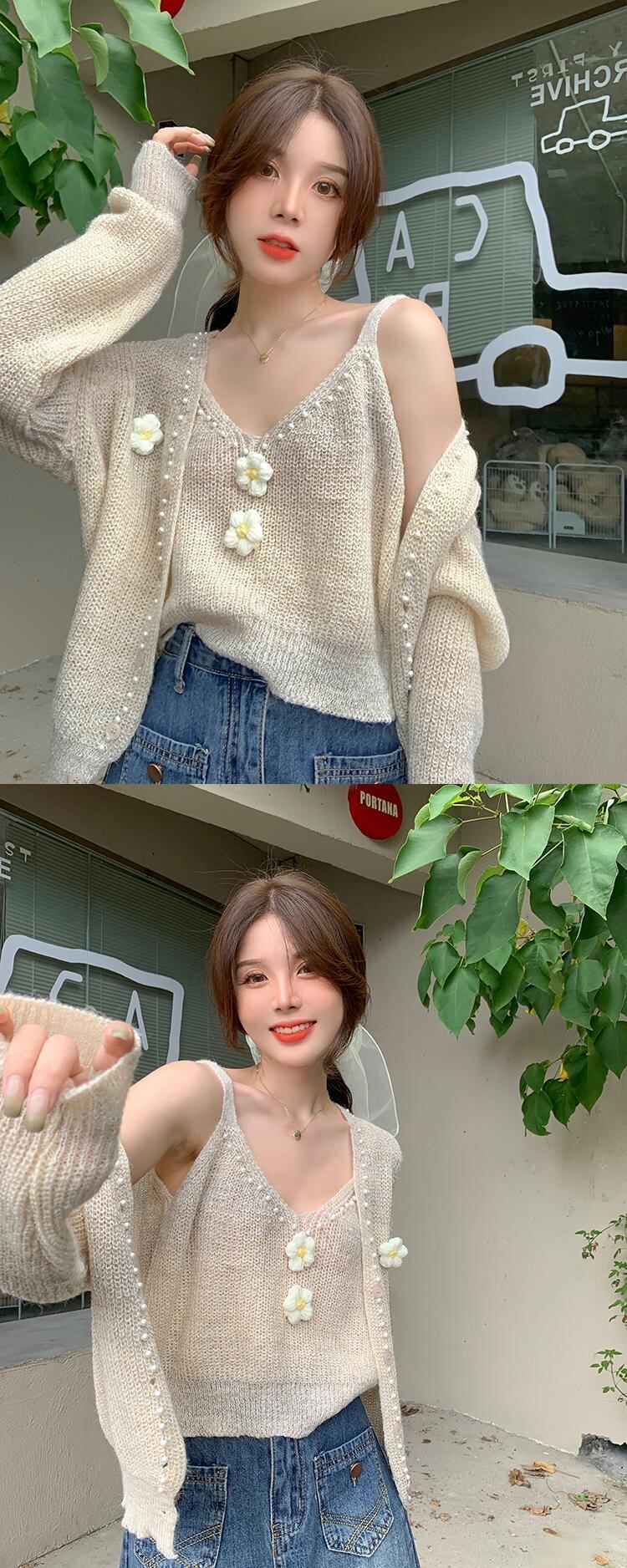 Salt-based gentle wind soft waxy pink sweater jacket women's autumn 2022 new sweet three-dimensional flower short top ショート ピンク 大人ガーリー スウィート キュート カジュアル オータム 秋物 フラワーデザイン 0921989857286487