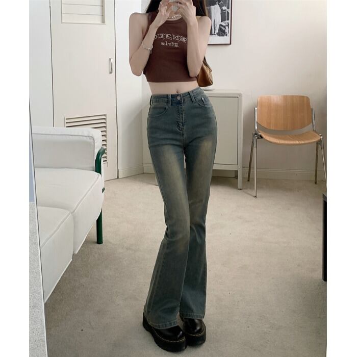 Retro Spice Girls Waist Micro-Flare Jeans Women's Fall 2022 Slim Fit Thin Stretch Straight Long Pants ロング レトロ スリム 0921954878839300