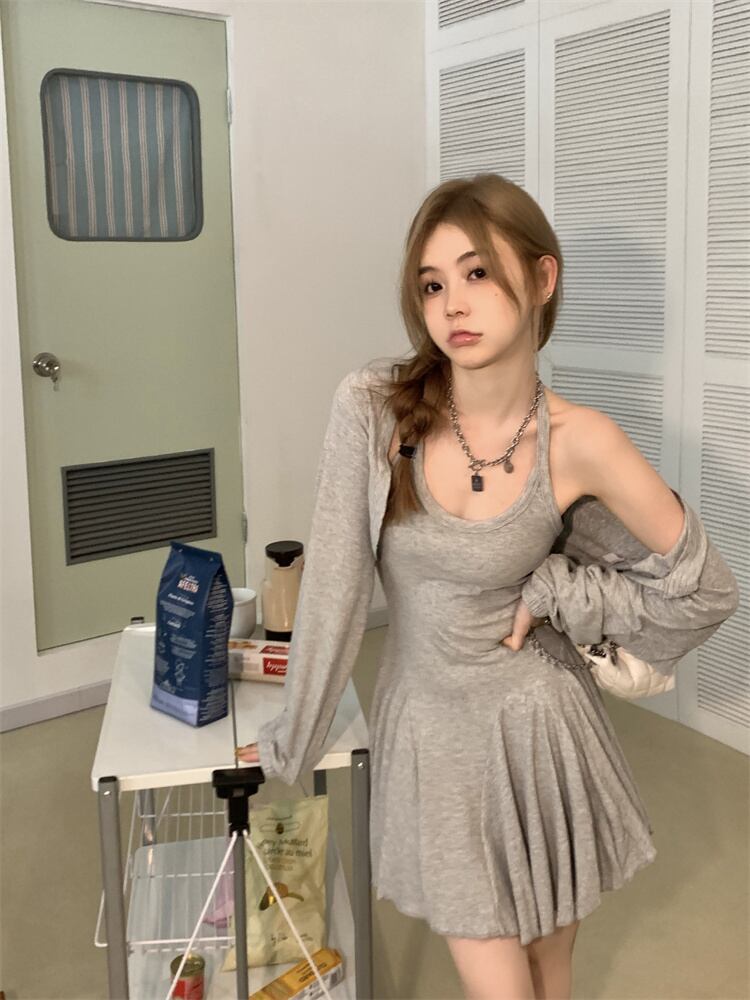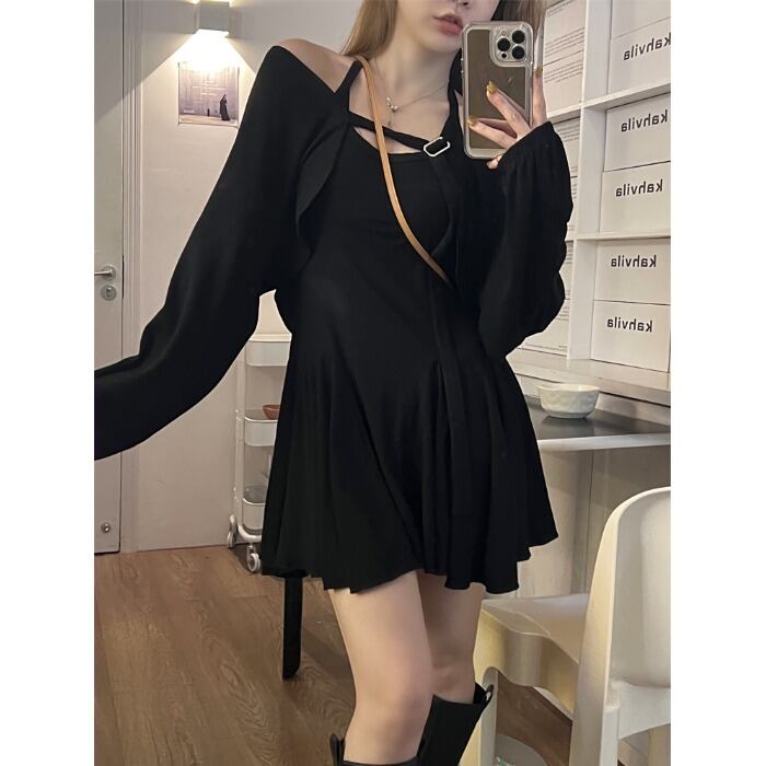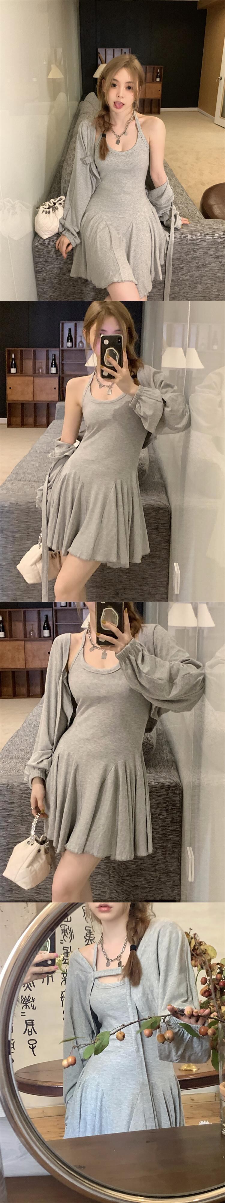 Pure desire wind casual suit female autumn 2022 new long-sleeved cardigan coat waist halter dress two-piece ロング カジュアル カーディガン オータム 秋物 0921973586392735
