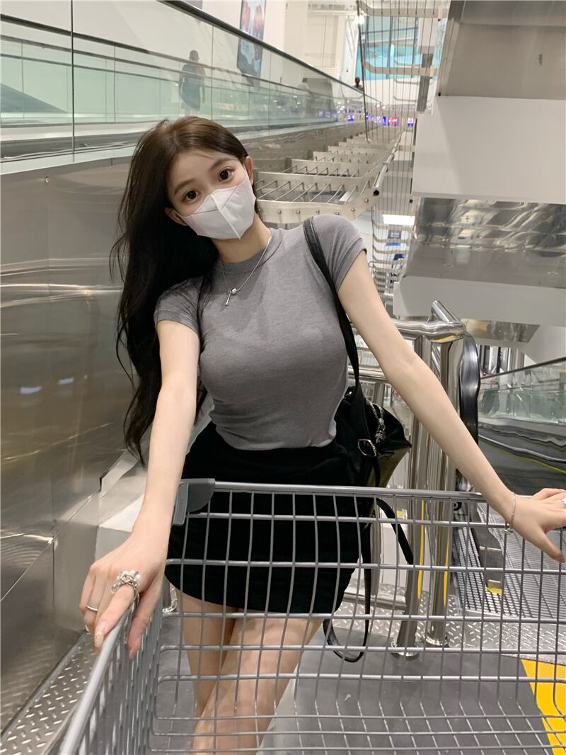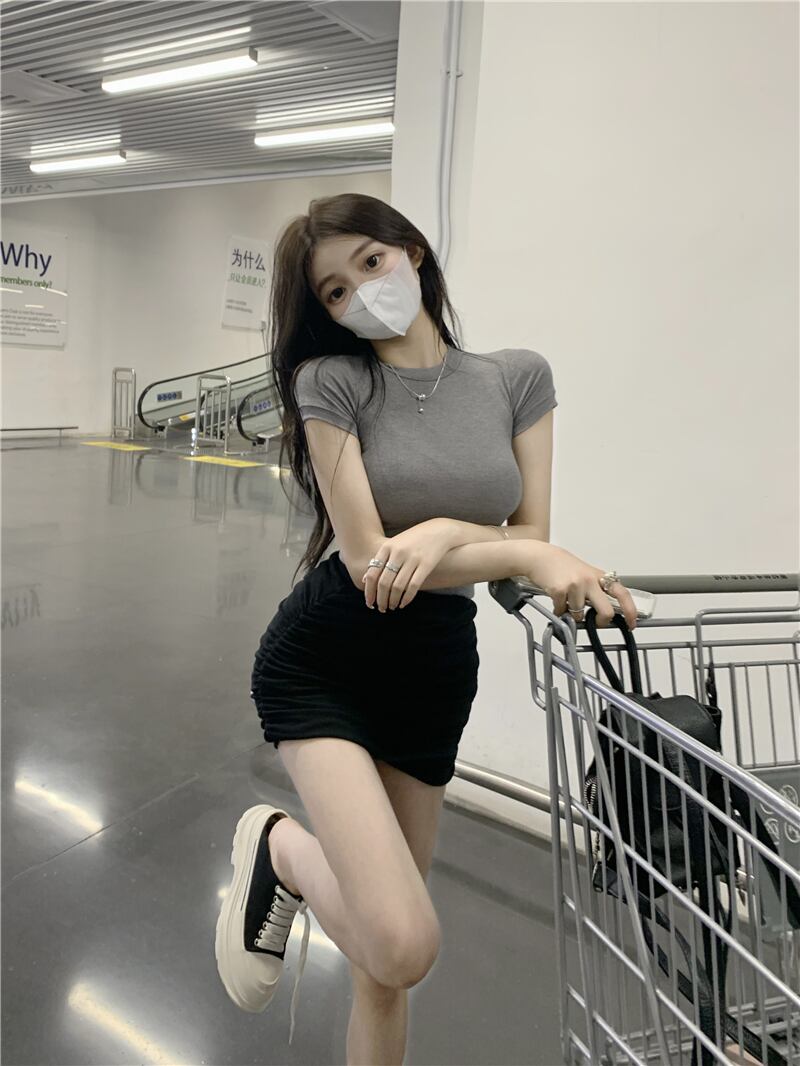 Pure desire style fashion suit female summer 2022 new slim short-sleeved T-shirt pleated hip skirt two-piece set プリーツ サマー 夏物 スカート スリム Tシャツ 0921941504771189
