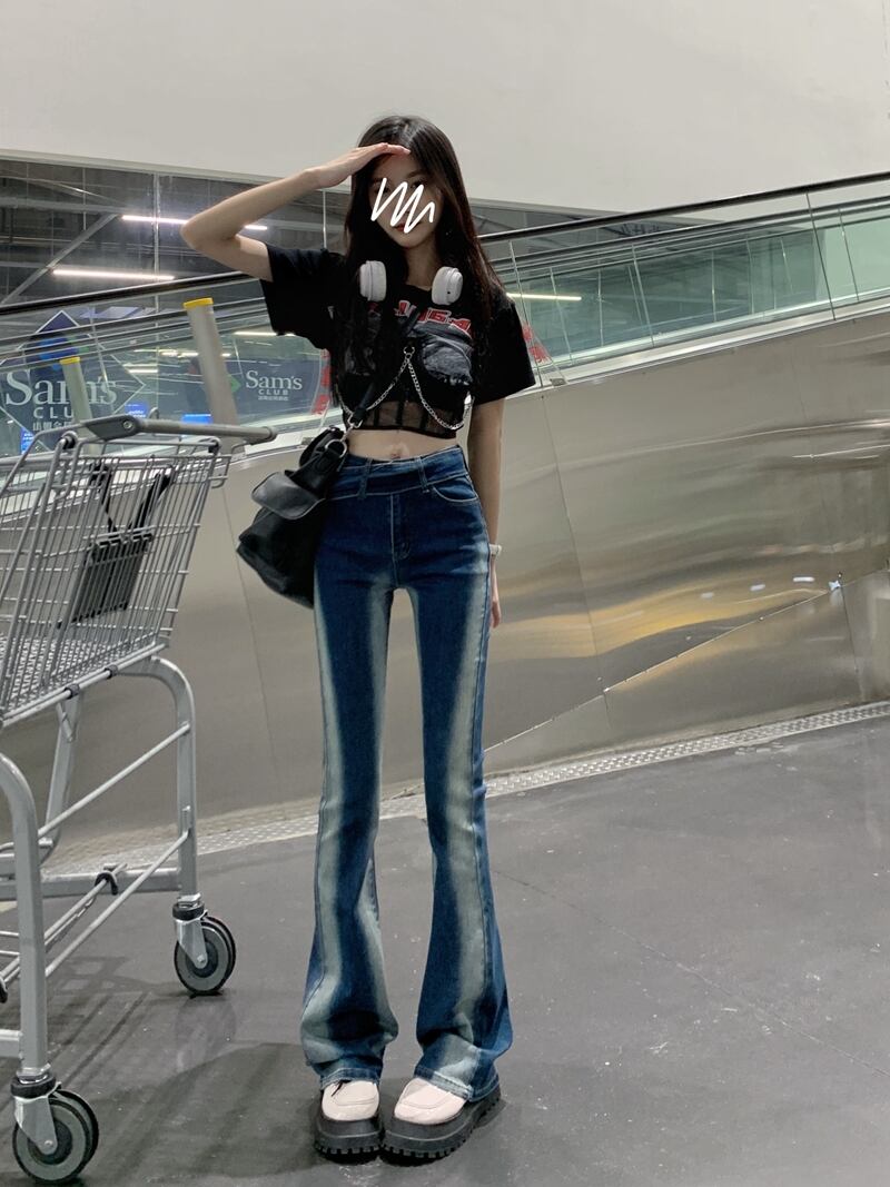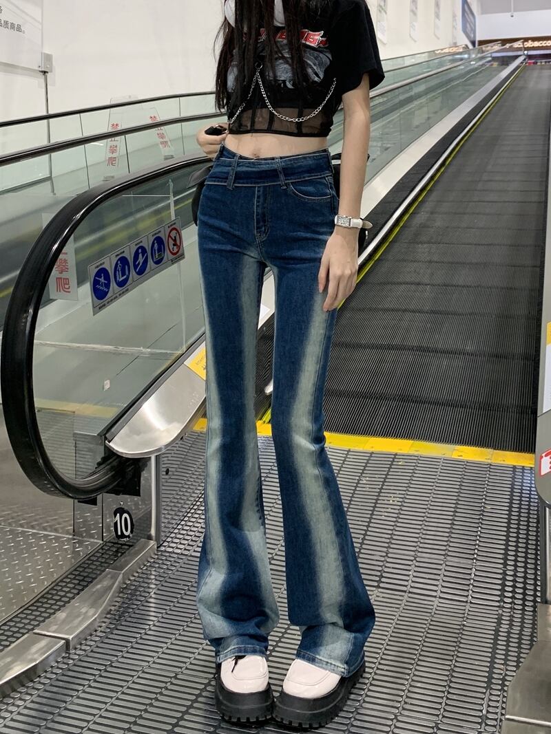 Spice Girls Retro Waist Gradient Micro Lace Jeans Women's Autumn 2022 Small Straight Mop Pants レトロ レース オータム 秋物 0921952189461390