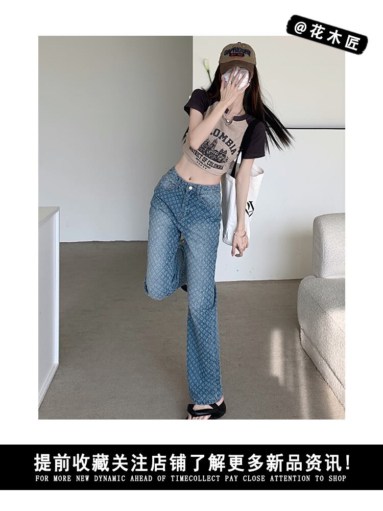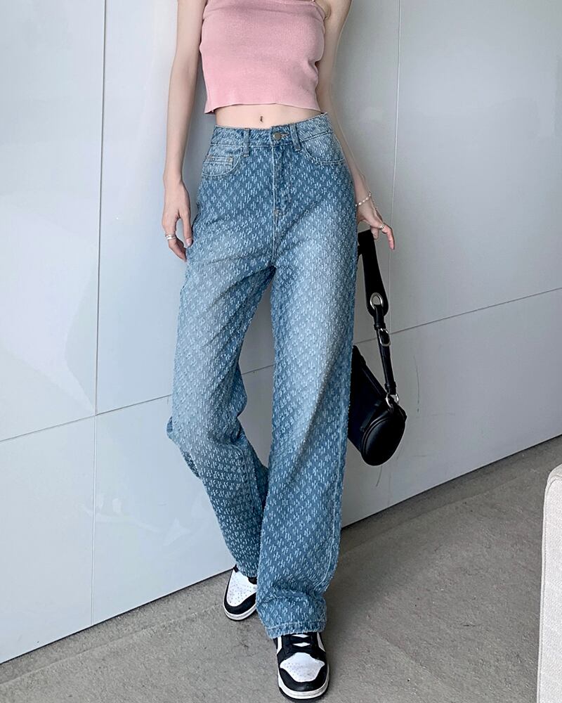 sense niche brushed jacquard high waist jeans women's autumn 2022 new version chic slim straight pants ハイウェスト オータム 秋物 スリム 092198686072050