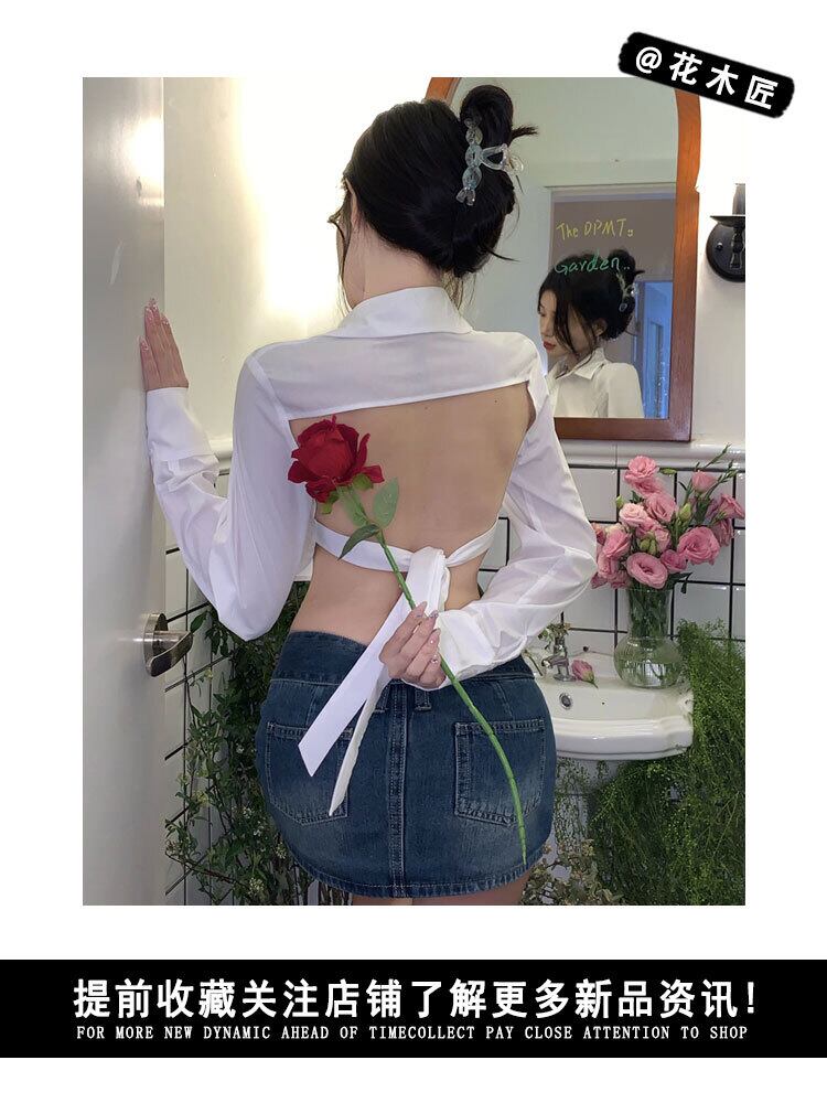 Careful machine backless straps white long-sleeved shirt women's autumn 2022 new chic slim short top ショート ロング ホワイト オータム 秋物 スリム 0921960009740299