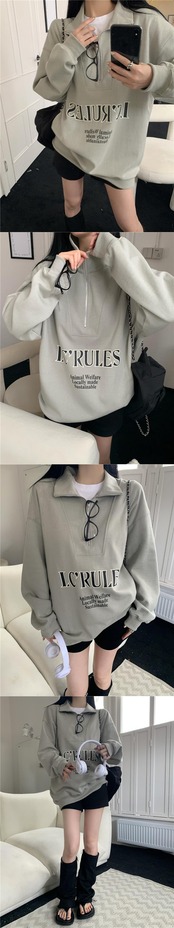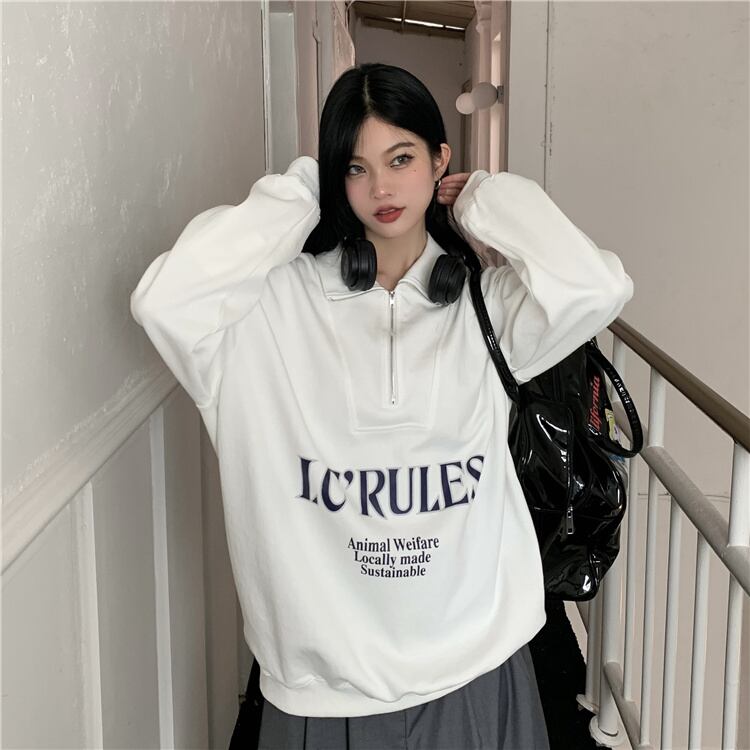 white letter lapel zipper sweater women's autumn new lazy style oversize loose long-sleeved top ロング ホワイト オータム 秋物 0921931408805257