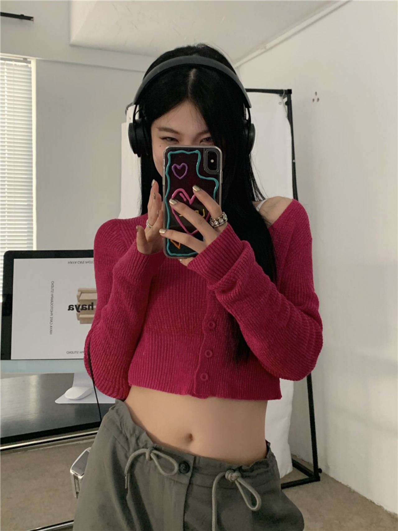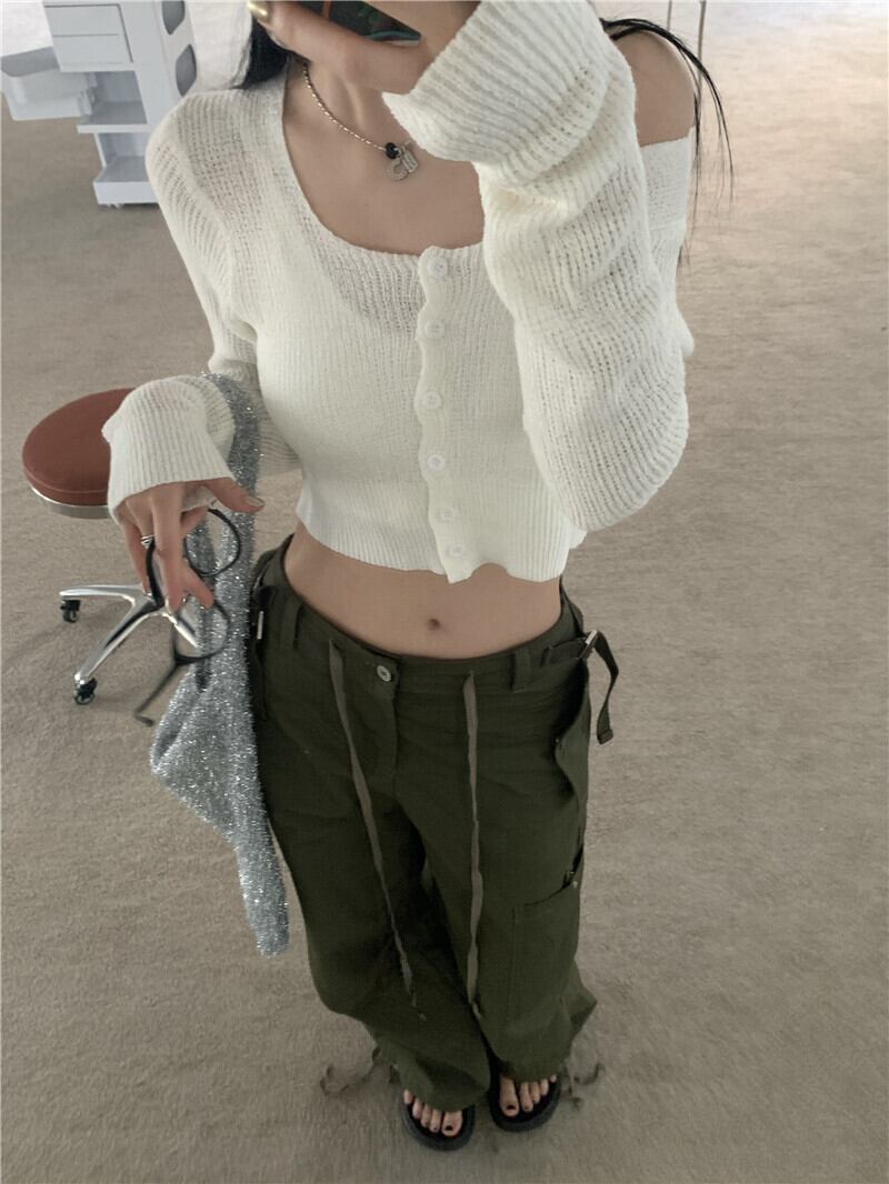 Hot thin blue knitted cardigan women's autumn 2022 new design retro short chic long-sleeved top ショート ロング ブルー レトロ カーディガン オータム 秋物 0921967537775321