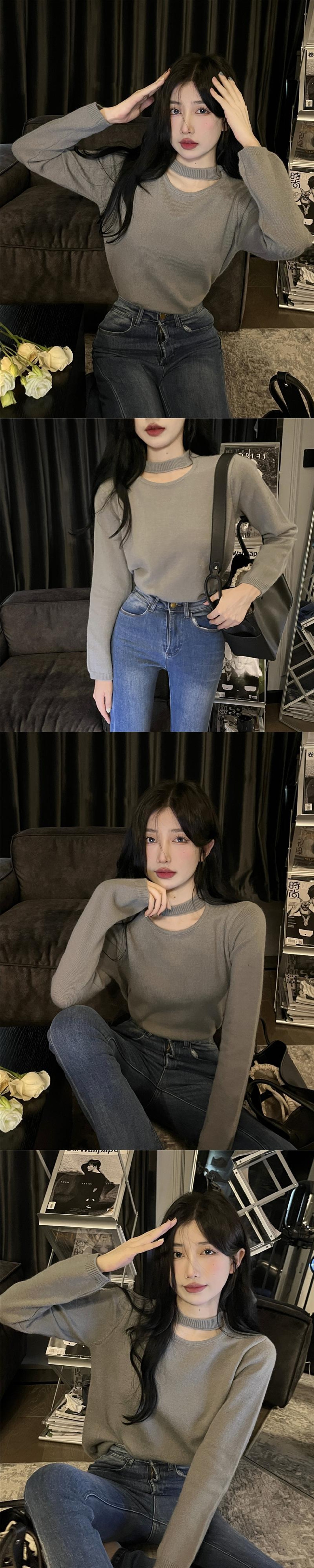 -quality niche hanging neck long-sleeved sweater women's autumn 2022 new chic and thin bottoming knitted top ロング オータム 秋物 092195099104483