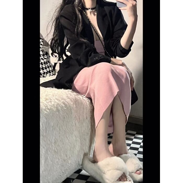 temperament casual black suit jacket women's autumn 2022 new mid-length loose and thin long-sleeved suit ロング ブラック カジュアル オータム 秋物 092195186917217