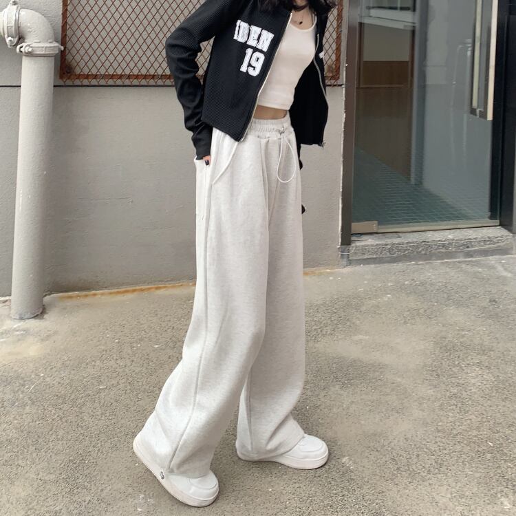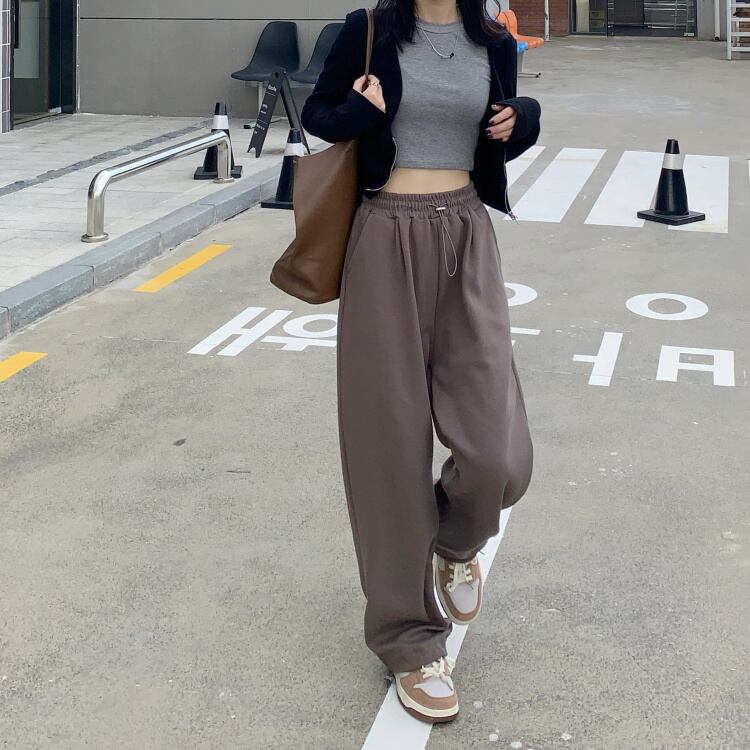sense fried street drawstring high waist casual pants women's autumn 2022 new version fashion all-match loose leggings ハイウェスト カジュアル ストリート オータム 秋物 0921915997704469