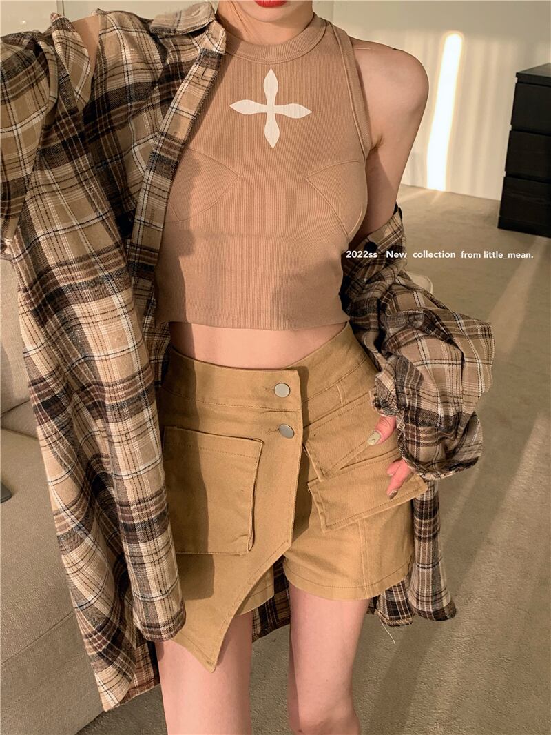 Hong Kong-style retro off-the-shoulder long-sleeved sunscreen plaid shirt women's autumn 2022 new design chic loose top ロング レトロ オータム 秋物 0921916581302653