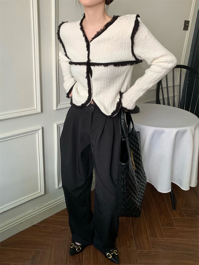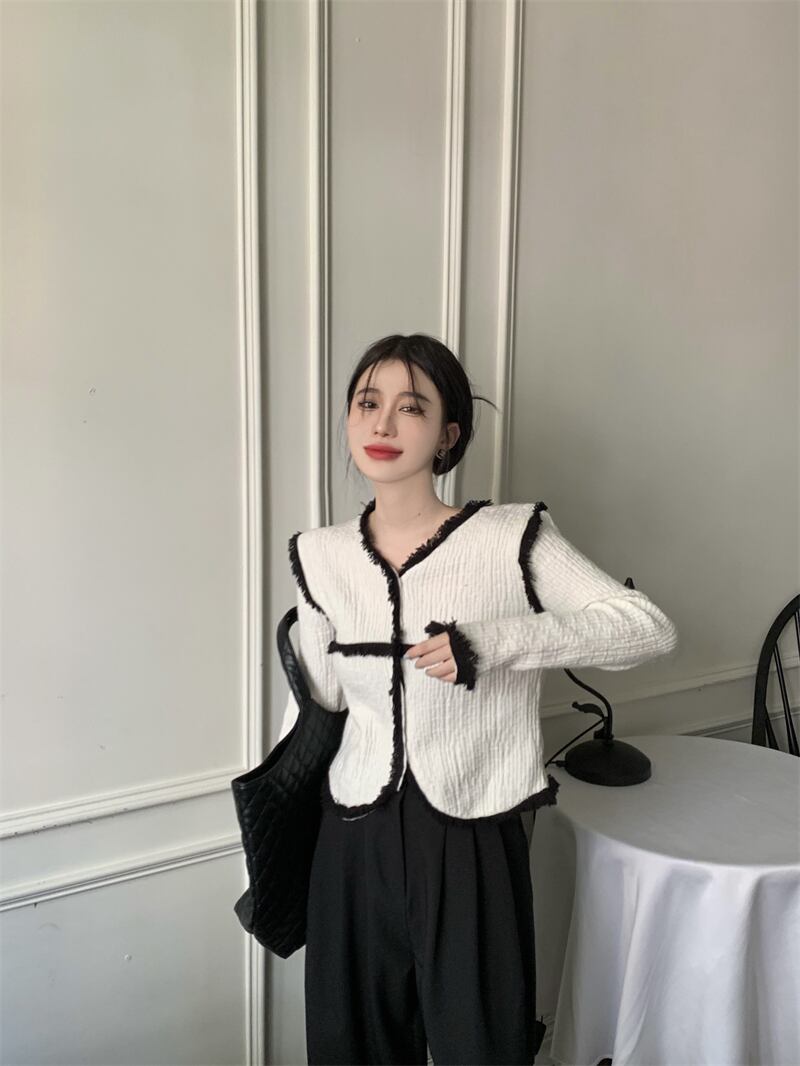 Xiaoxiang style temperament design sense contrast color long-sleeved coat women's autumn 2022 new chic all-match cardigan trend ロング カーディガン オータム 秋物 0921912300261872
