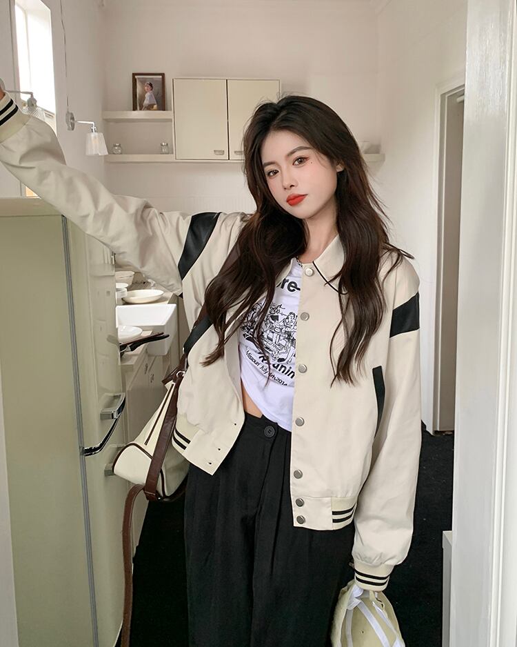 version of the fashion bomb street baseball unim jacket women's autumn 2022 new design sense color matching loose jacket top trend ストリート オータム 秋物 0921947151519642