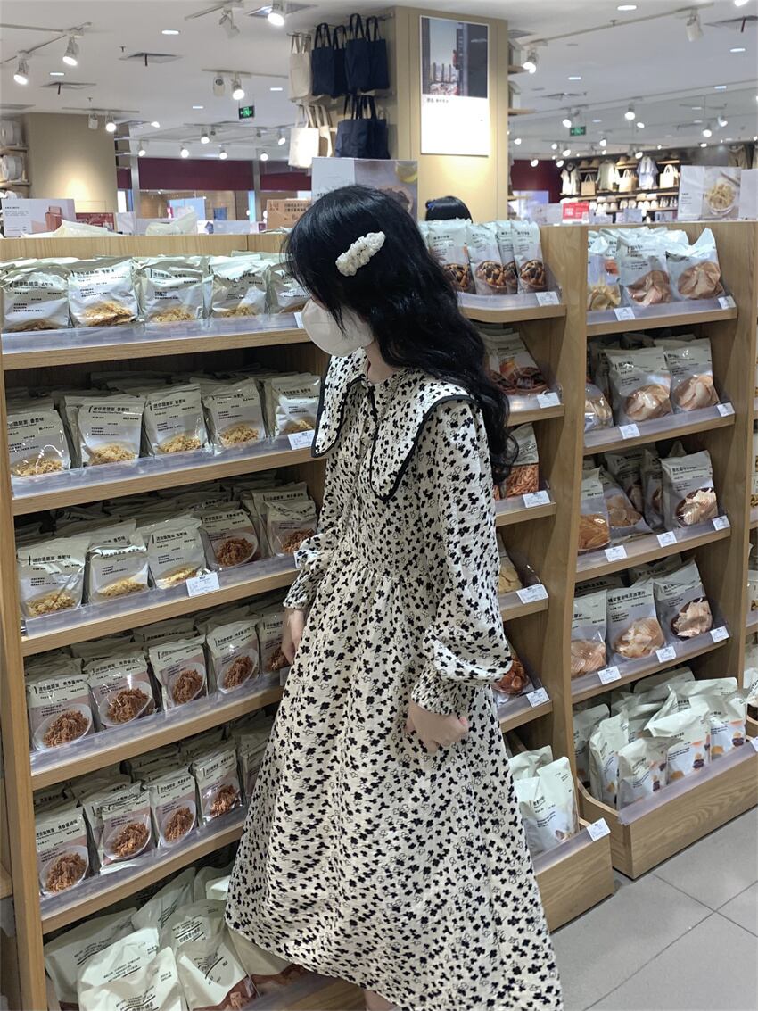 retro doll-collar floral dress women's autumn 2022 new mid-length waist-reducing skirt レトロ オータム 秋物 花柄 スカート 0921923873194848