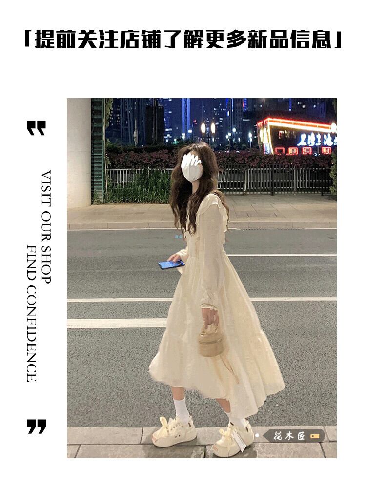 French gentle wind V-neck ruffled trumpet sleeve dress women's autumn 2022 new temperament waist A-line skirt trend オータム 秋物 スカート Vネック Aライン 0921996831766240