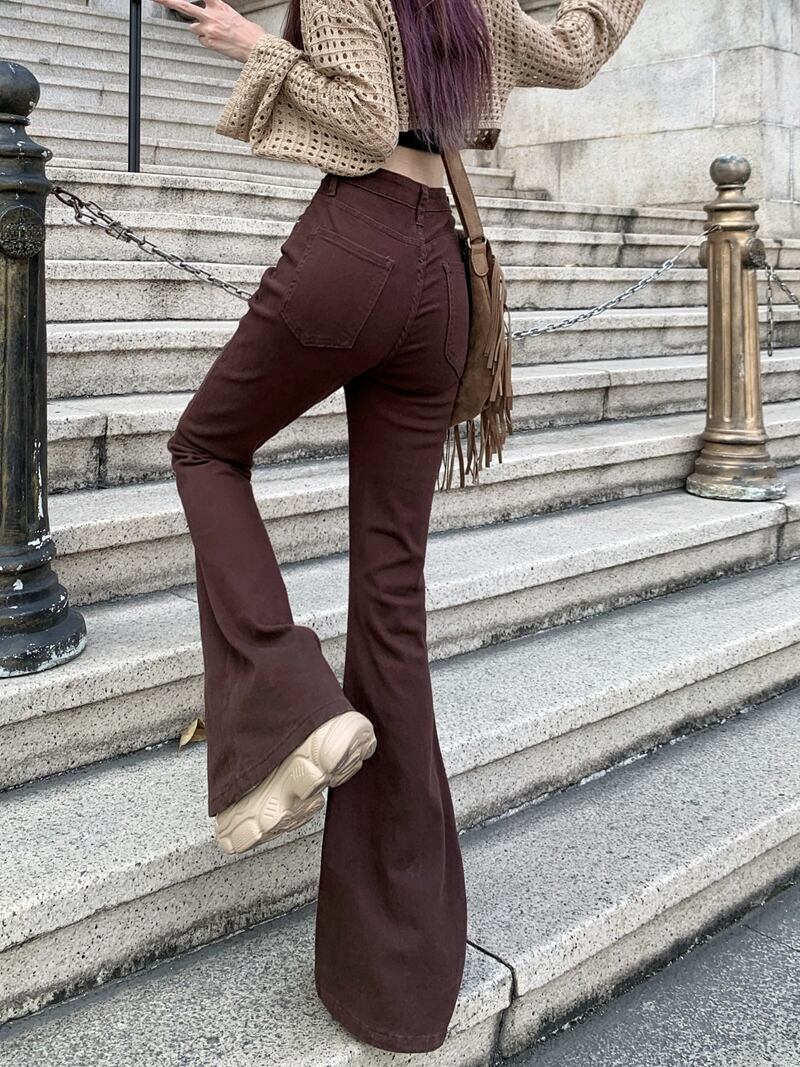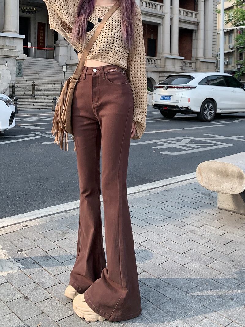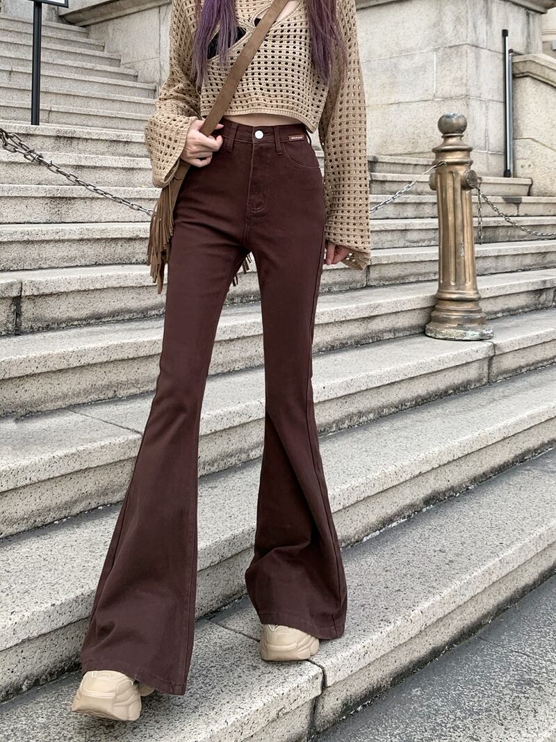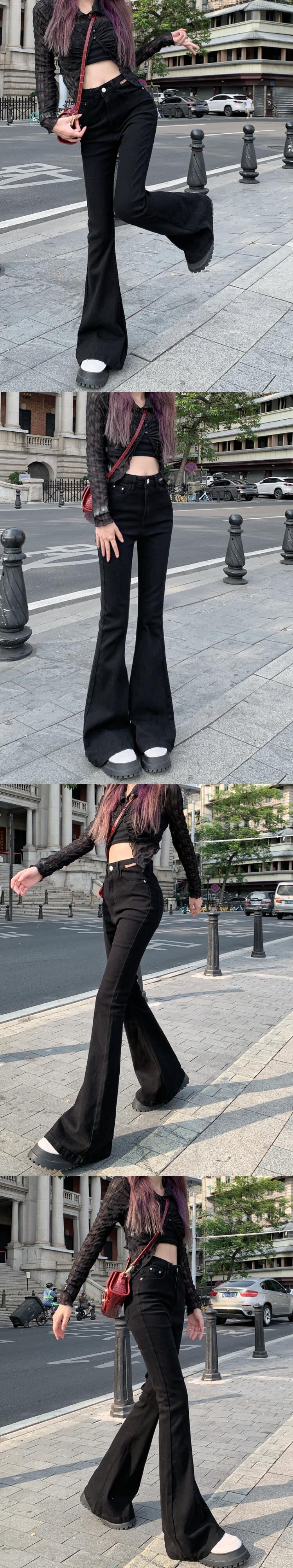 Hot high-waisted slim micro-flare jeans women's early autumn 2022 new design slim straight horseshoe pants オータム 秋物 スリム 092193559276693
