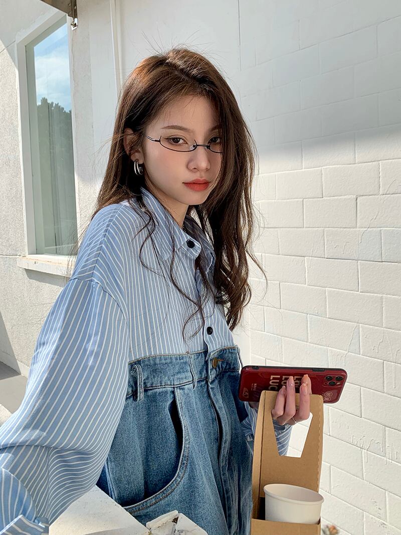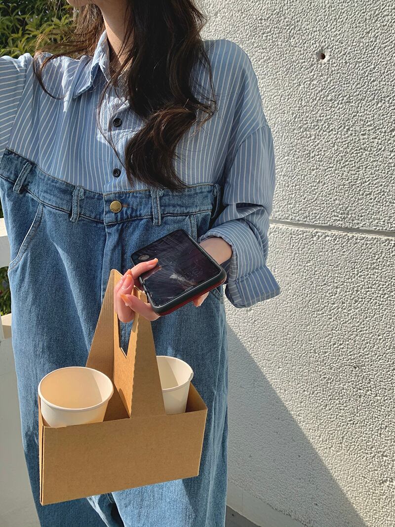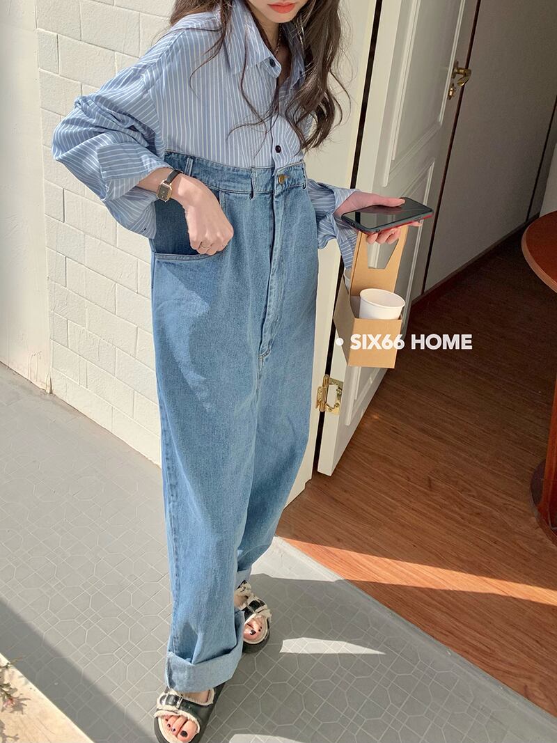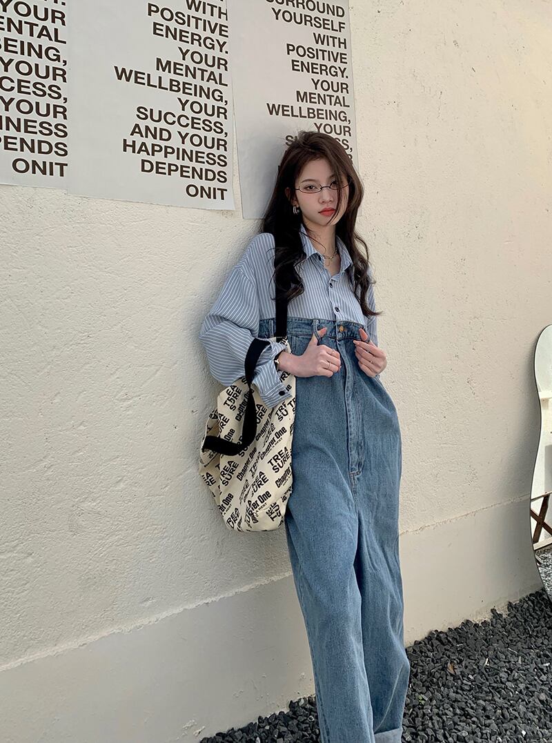 Lazy fake two-piece stitching denim jumpsuit women's autumn 2022 new version of loose wide-leg pants trendy オータム 秋物 ステッチ 0921990797385419