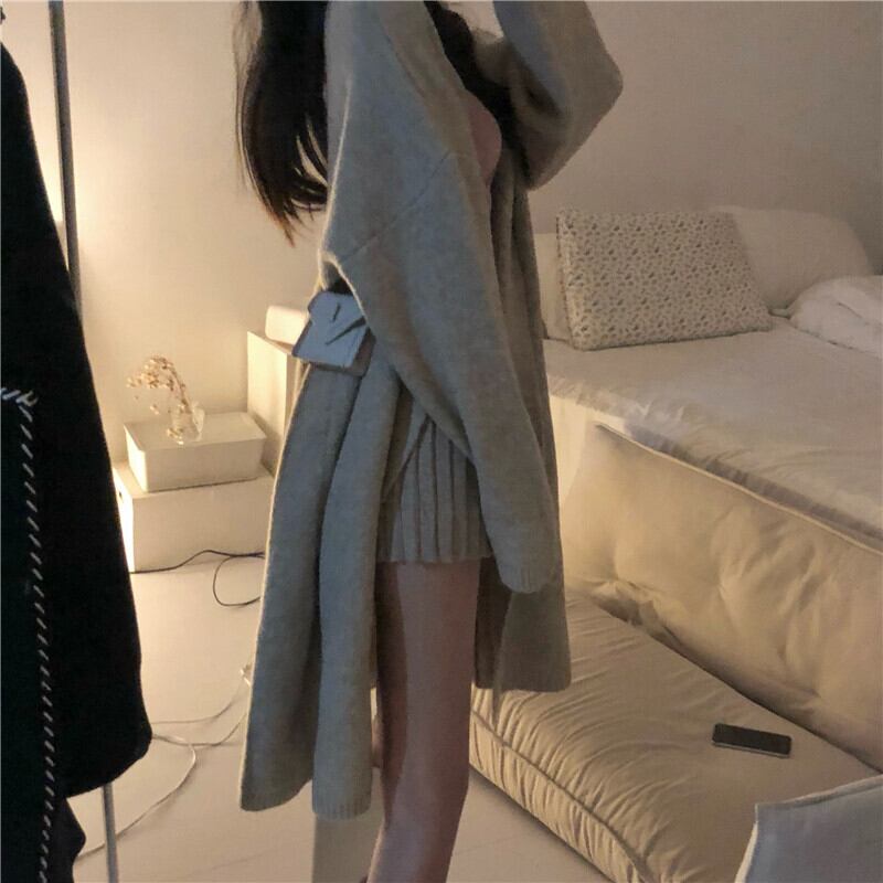 Autumn suit female gentle wind sweater cardigan coat pure desire camisole knitted pleated skirt three-piece set カーディガン プリーツ オータム 秋物 スカート ピュア 0921956165436473