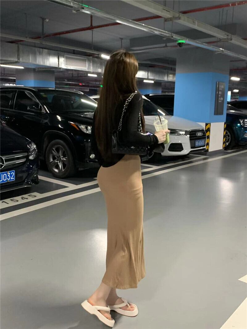 Net red pure desire wind suit skirt female autumn 2022 new long-sleeved U-neck T-shirt suspender fishtail dress two-piece ロング レッド オータム 秋物 スカート Tシャツ ピュア 0921910996878418