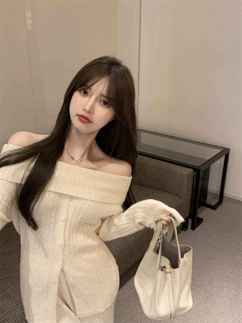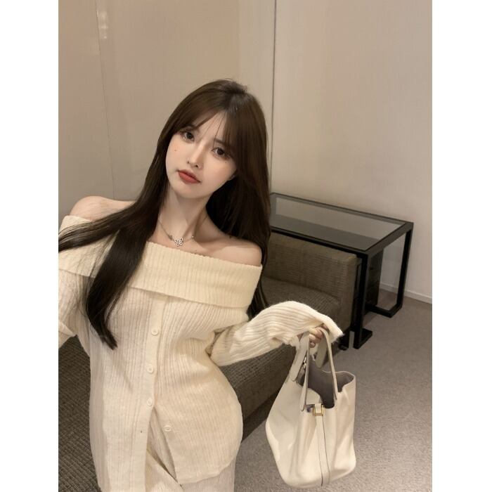 Gentle wind temperament all-match one-shoulder knitted sweater women's autumn 2022 new soft waxy slim short sweater cardigan ショート カーディガン オータム 秋物 スリム 0921977137815768