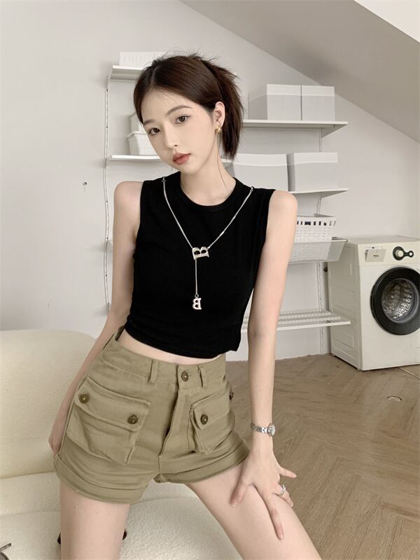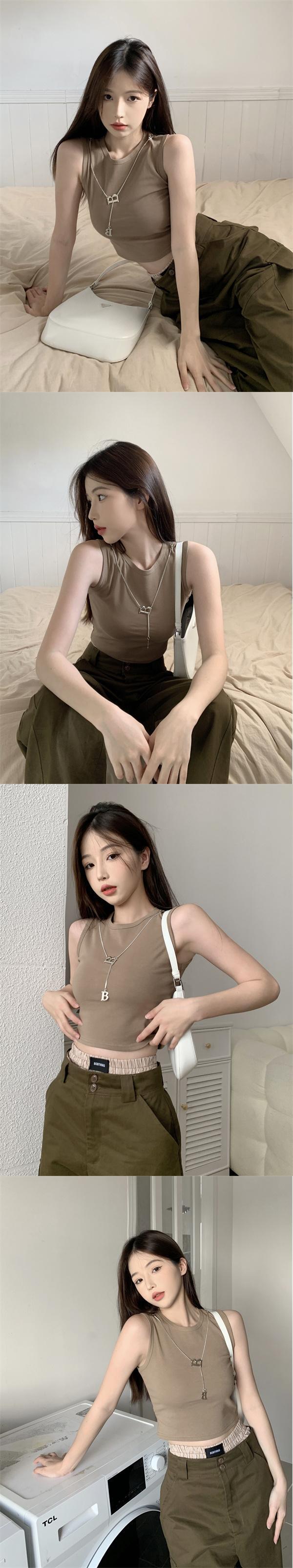 Hot chic temperament slim sleeveless vest women's summer outer wear 2022 new design sense chain short top ショート サマー 夏物 ノースリーブ スリム チェーン 0921950207314807