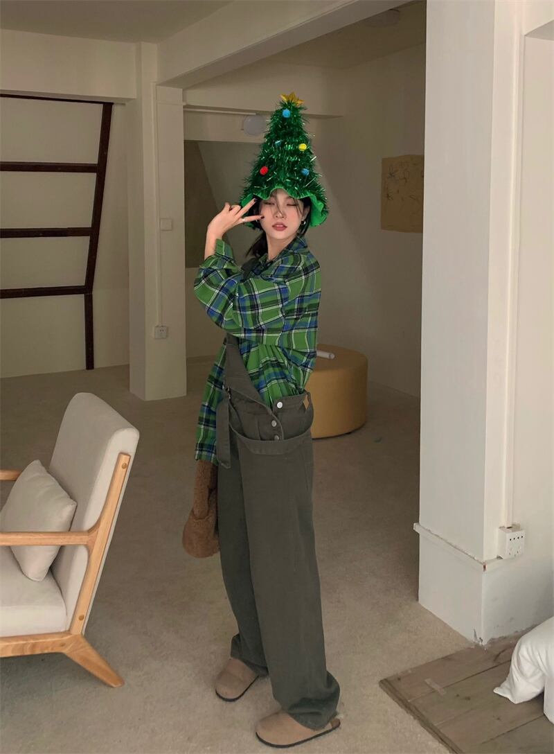 retro fried street fashion suit female autumn 2022 new plaid shirt denim overalls two-piece tide レトロ ストリート オータム 秋物 0921942436429360