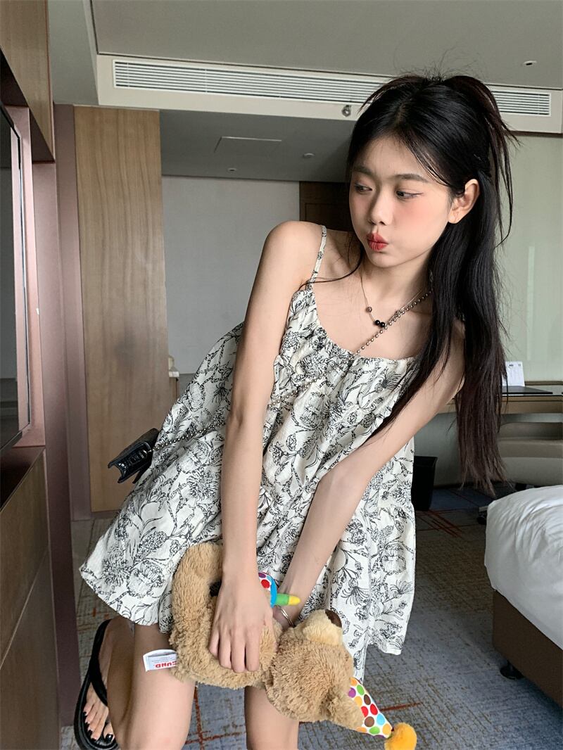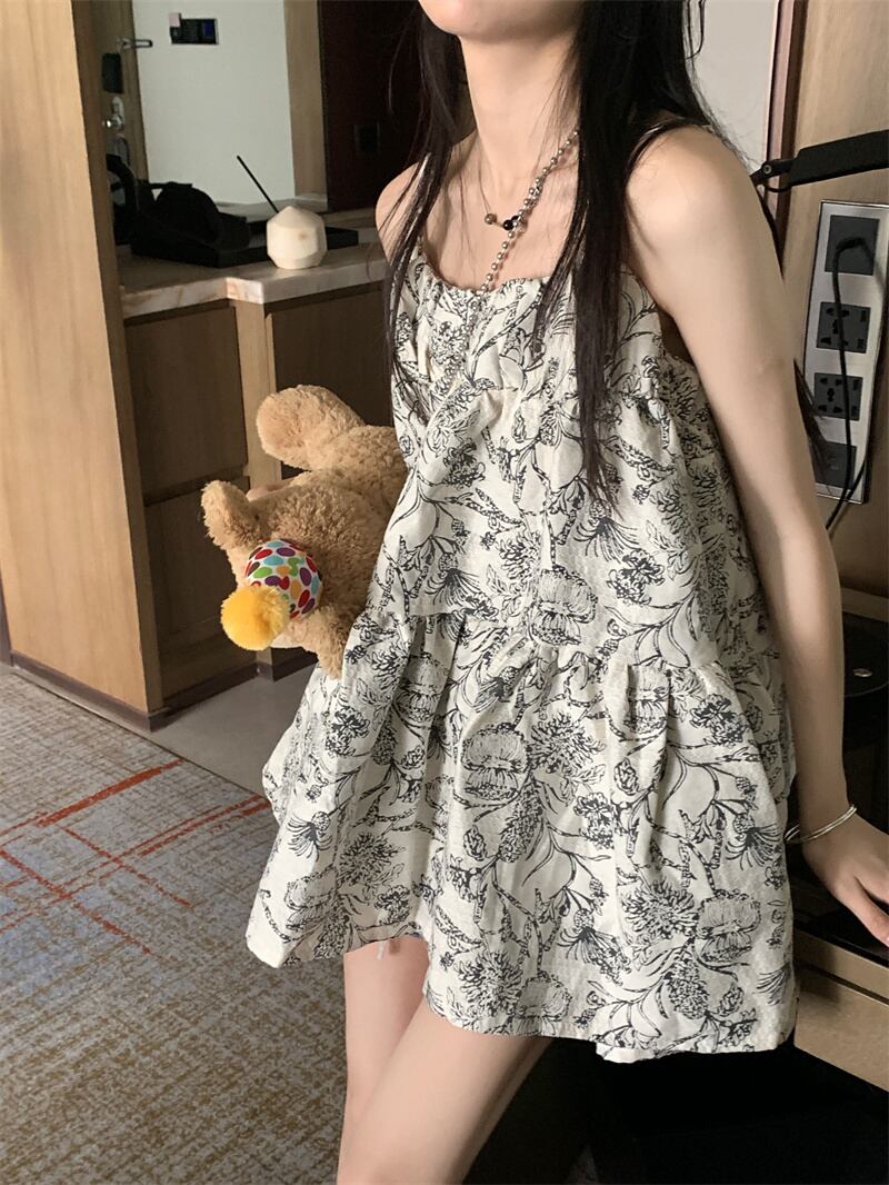 -quality printed suspender dress female summer 2022 new small design sense a-line tutu skirt short skirt ショート プリント サマー 夏物 スカート Aライン パニエ ペチコート 0921944560945403