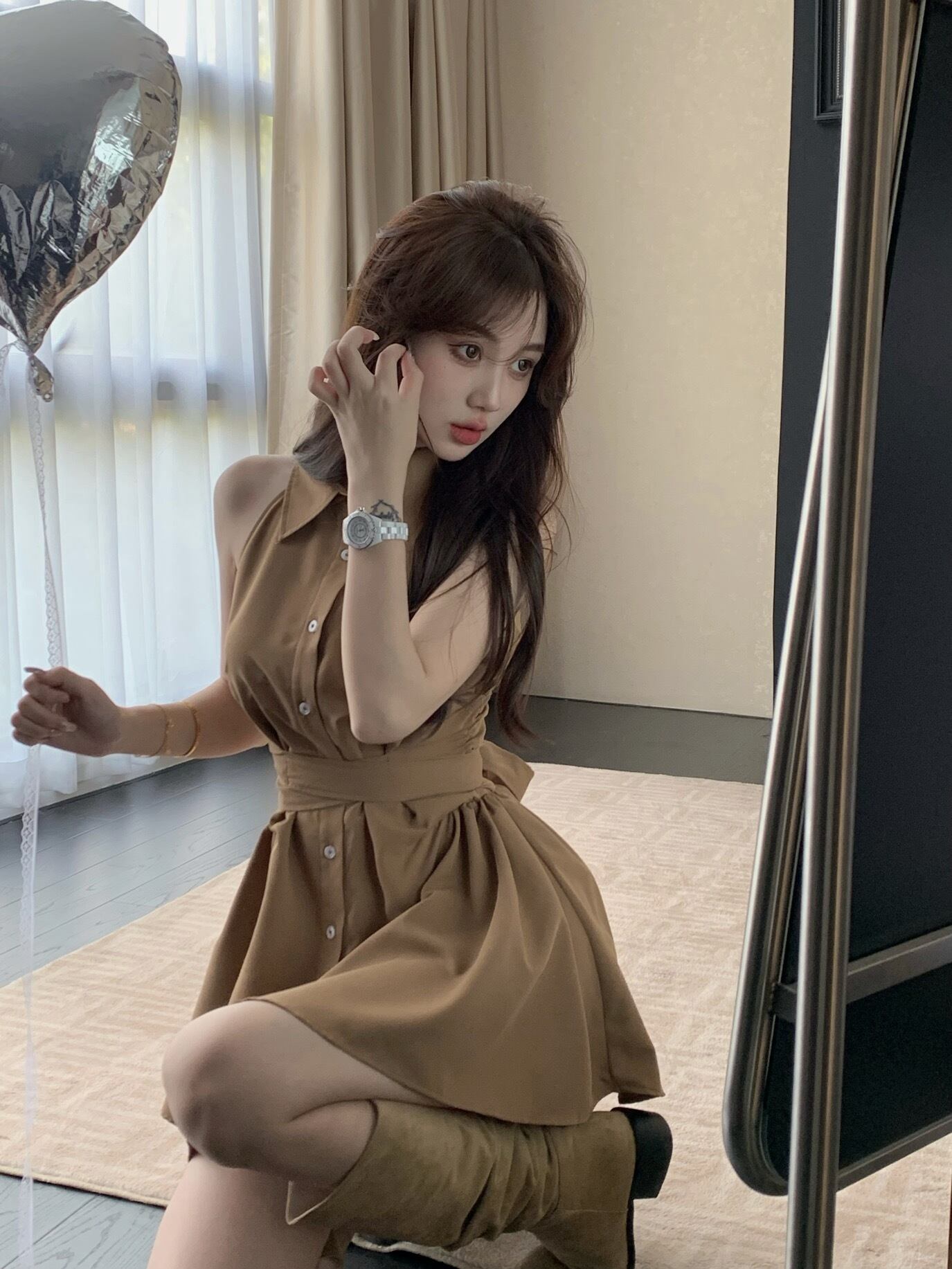 retro Polo collar strap shirt dress women's summer 2022 new pure desire wind waist skirt レトロ サマー 夏物 スカート ピュア 0921976084415436