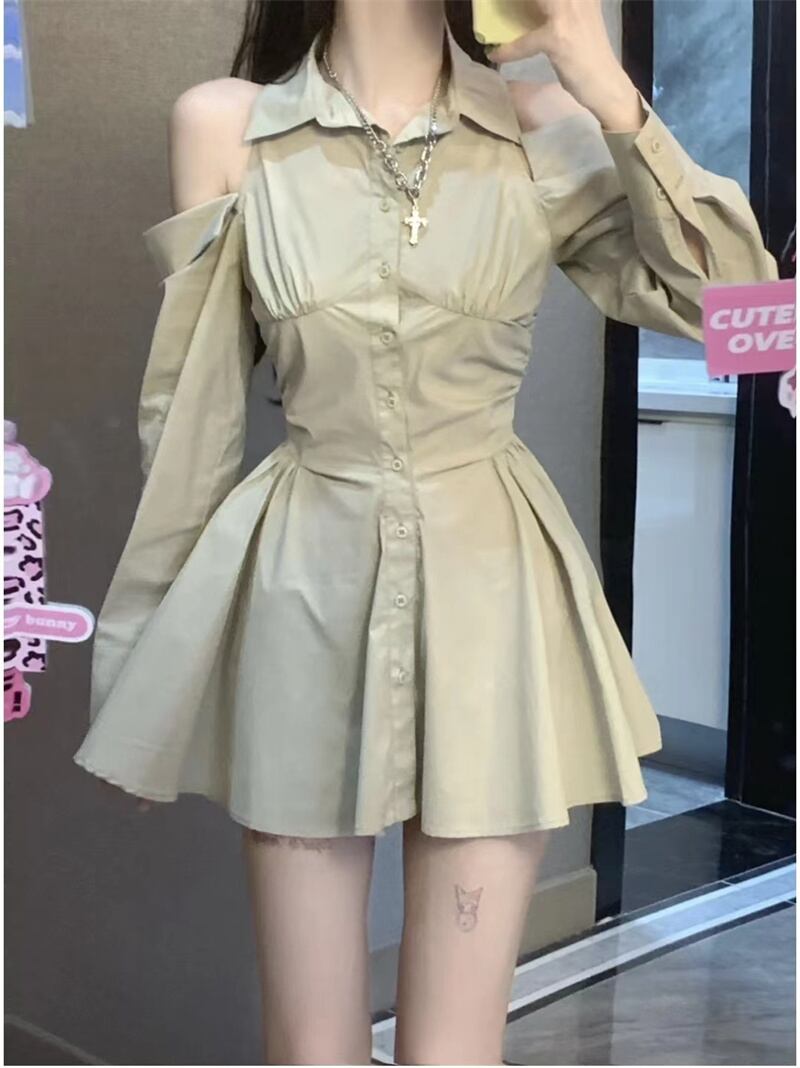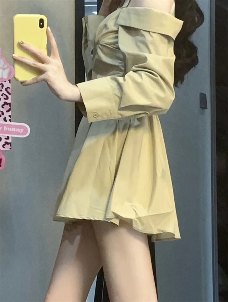version of pure desire off-the-shoulder shirt dress women's autumn 2022 new design sense temperament waist thin A-line skirt オータム 秋物 スカート Aライン ピュア 0921918422803907