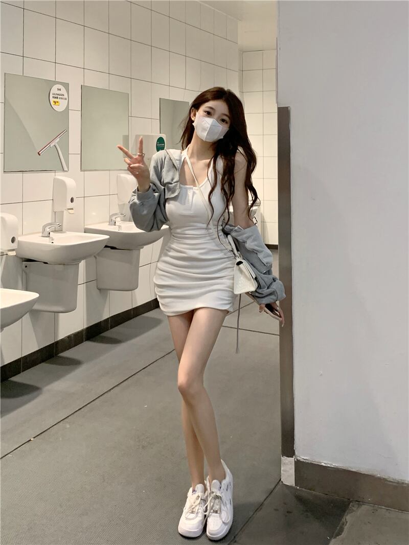 Pure desire wind solid color halter neck pleated dress women's summer 2022 new waist and thin bag hip short skirt trend ショート プリーツ サマー 夏物 スカート ソリッドカラー 0921918659983984