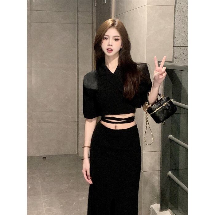 -end chic black suit skirt women's summer 2022 new bandage suit jacket skirt two-piece tide ブラック サマー 夏物 スカート 0921973941228051