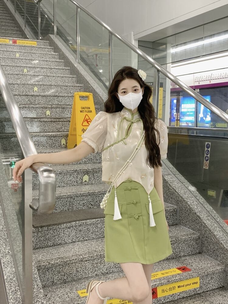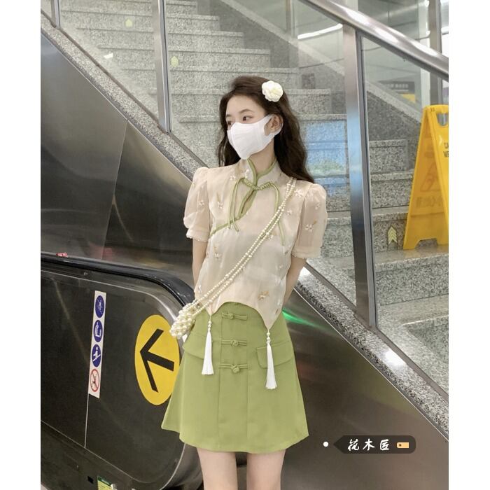 Chinese style improved cheongsam suit skirt female summer 2022 new embroidered top skirt two-piece tide レッド 刺繍 サマー 夏物 スカート 0921935734294517