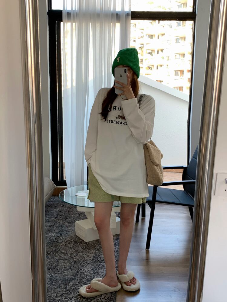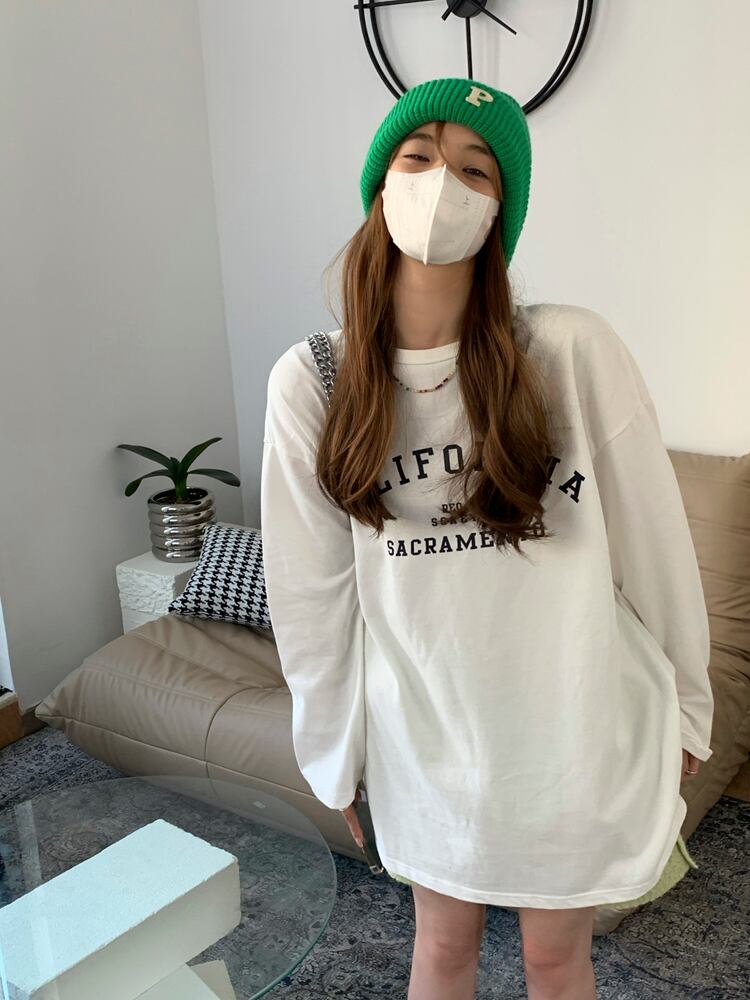 Early autumn letter printing white long-sleeved T-shirt women's 2022 new version all-match loose mid-length bottoming top ロング ホワイト オータム 秋物 Tシャツ 0921955613528048