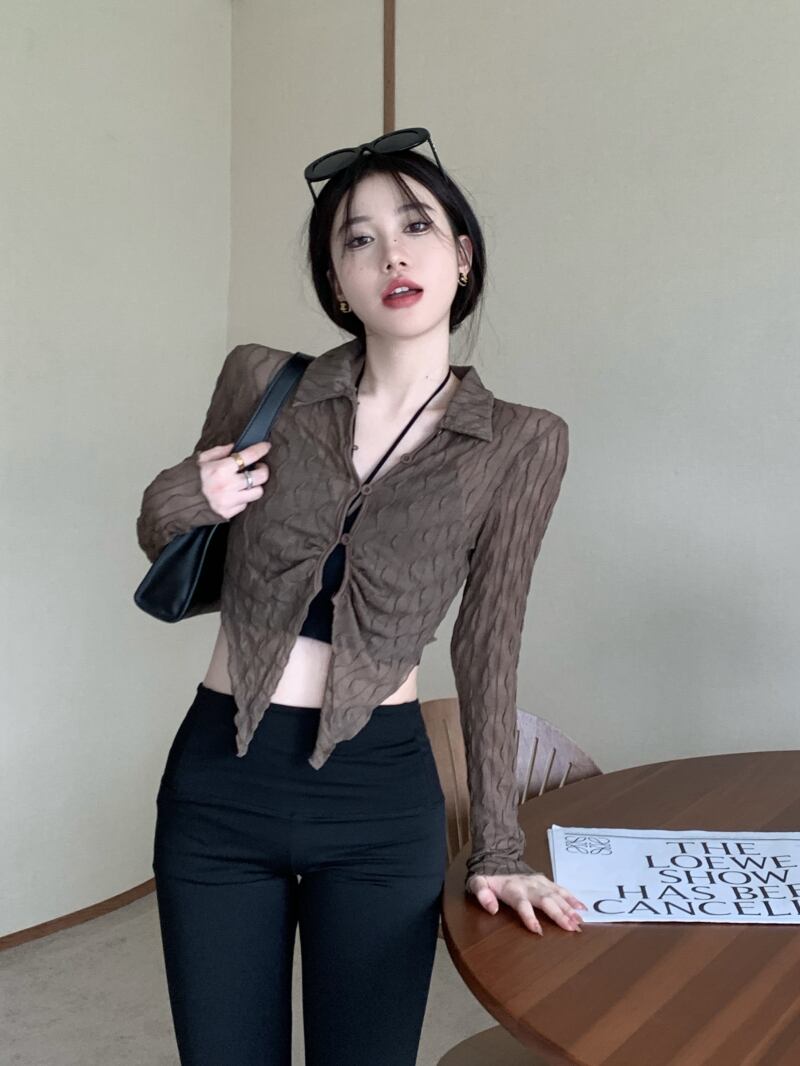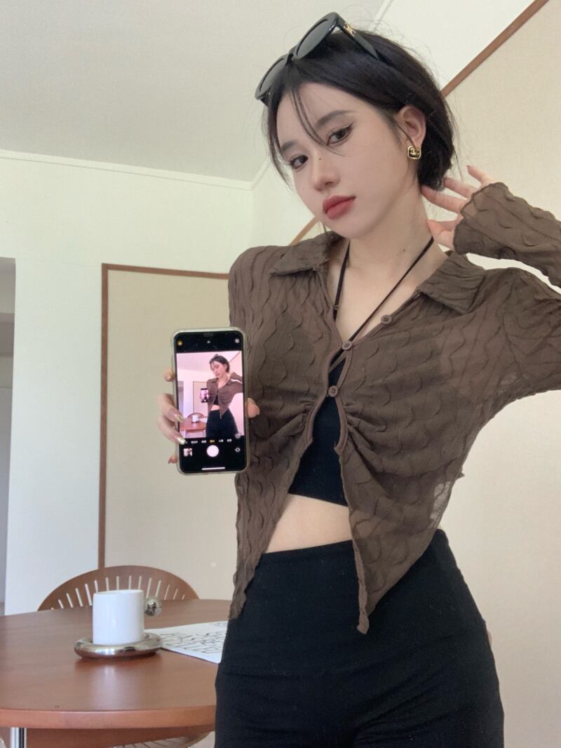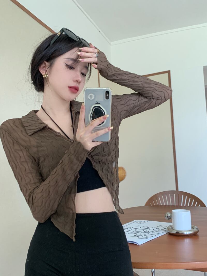 Hot thin long-sleeved sunscreen shirt women's early autumn 2022 new slim design irregular short top trendy ショート ロング オータム 秋物 スリム 0921922134779517