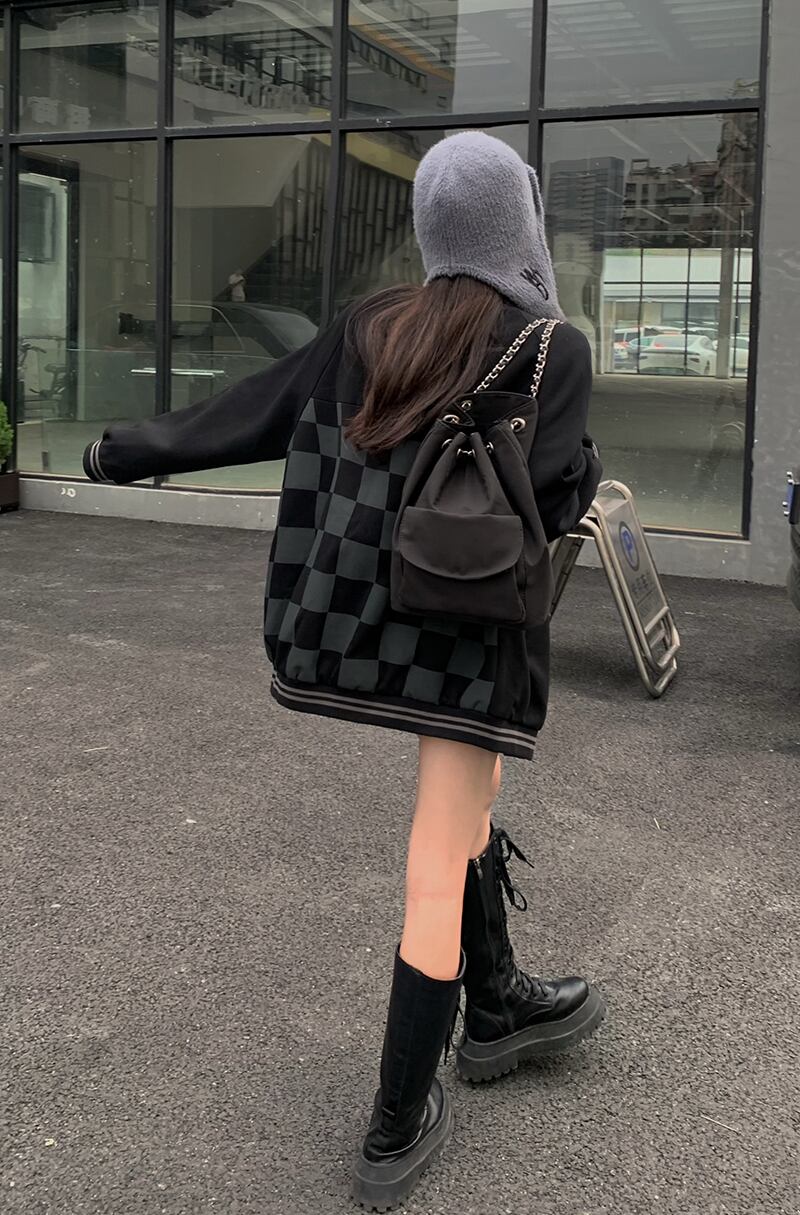 sense niche checkerboard baseball unim jacket women's autumn 2022 new version all-match loose jacket top オータム 秋物 0921914908573488
