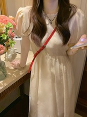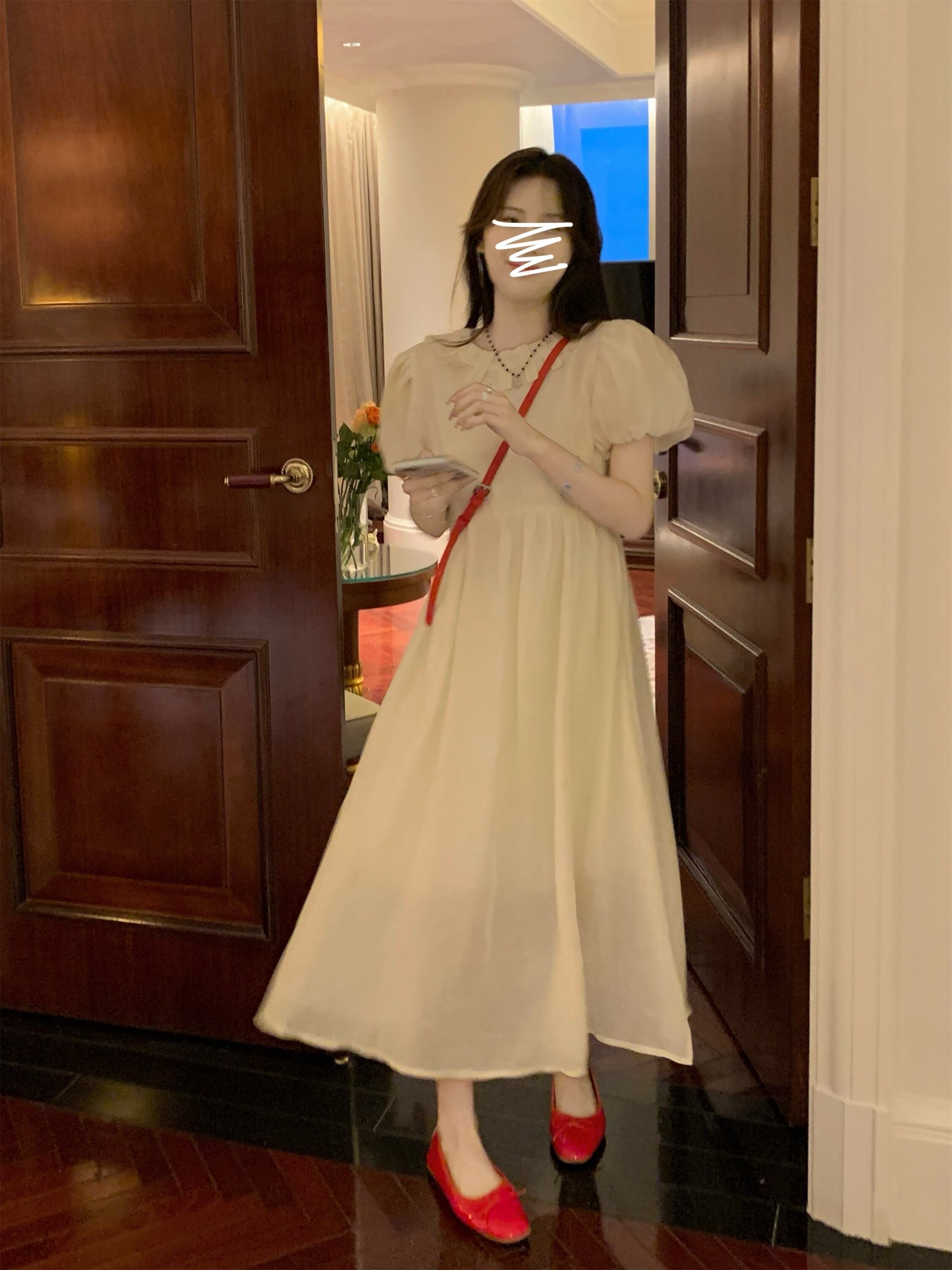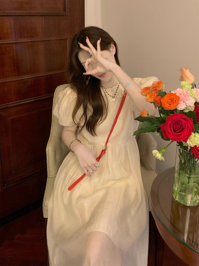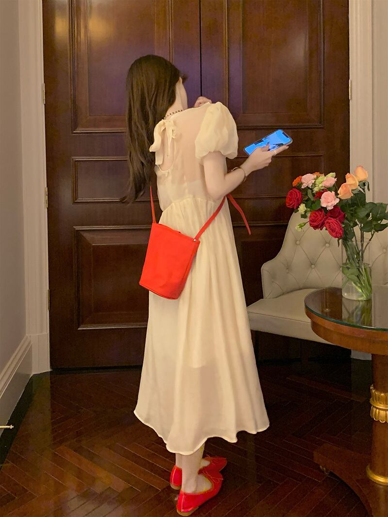 French first love puff sleeve dress female summer 2022 new fairy backless tie waist mid-length skirt サマー 夏物 スカート 0921936762342524