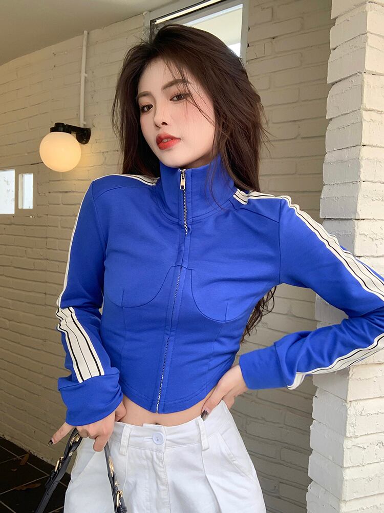 アメリカン レトロ ジャケット スタンドカラー ジャケット レディース 2022年秋 新作 コントラストカラー ストライプ 長袖 カーディガン トップス イン 潮 ロング オータム 秋物 0921960740973136