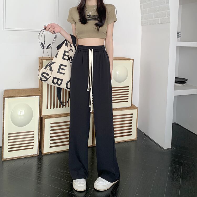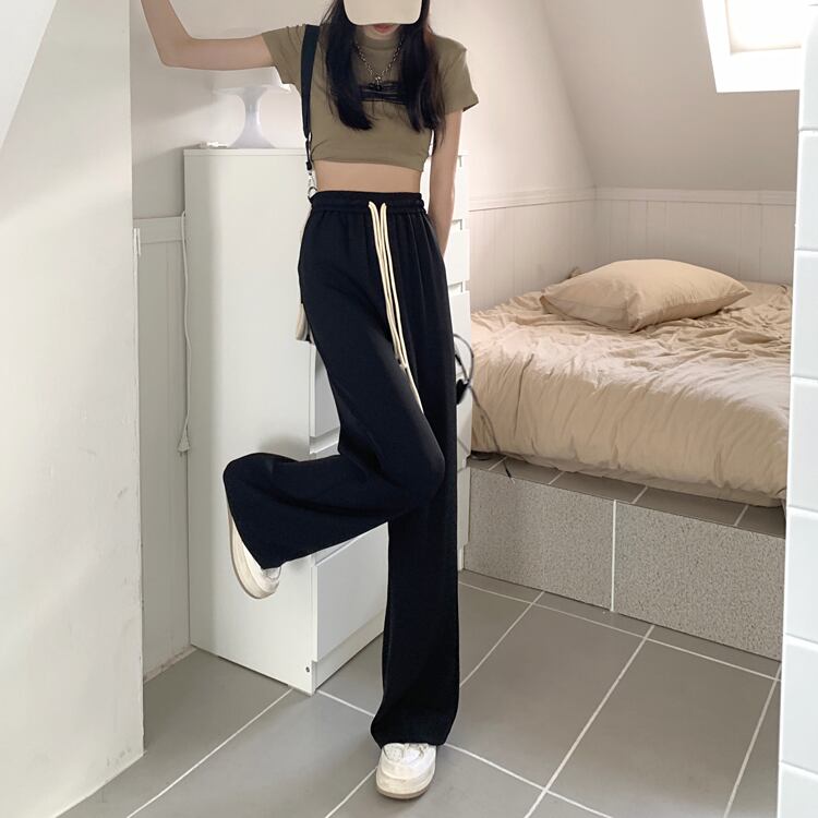 韓国語版初秋のドレープ ハイウエスト スリム カジュアル パンツ女性の 2022 新しい無地ワイドレッグ パンツ オール マッチ ルーズ ロング パンツ ハイウェスト オータム 秋物 ワイドパンツ ソリッドカラー 09219687693643