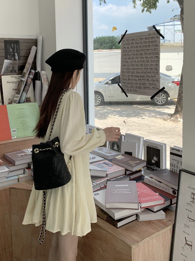 韓国スタイルの年齢を減らす初恋スタイルのレースアップ長袖ドレスの女性の2022年秋の新しいゆったりとした、薄くて甘いAラインのスカート ロング 大人ガーリー スウィート キュート カジュアル オータム 秋物 0921964428305259