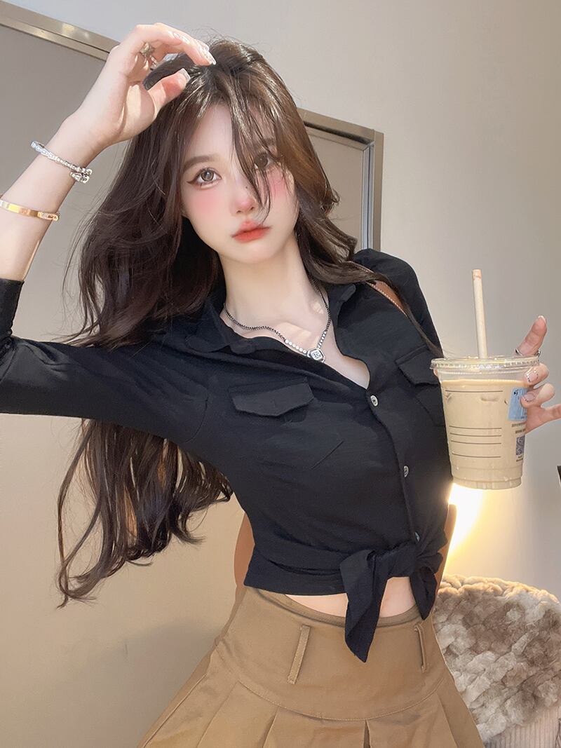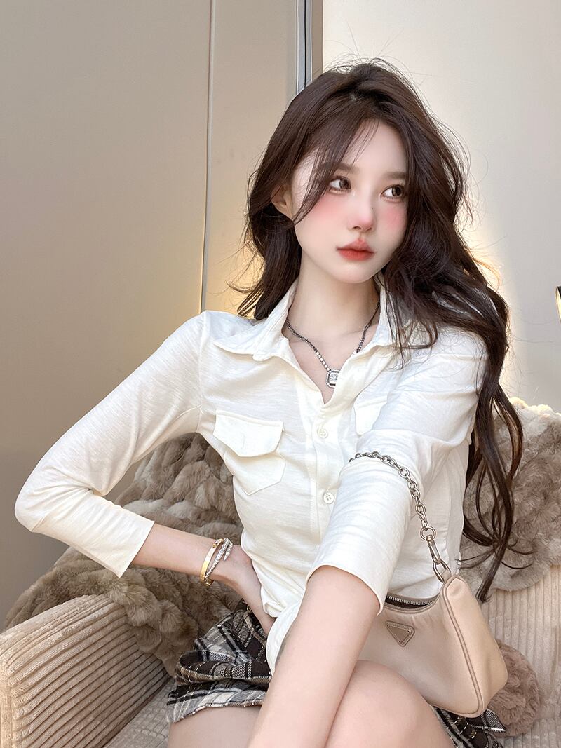 純粋な欲望のセクシーな気質スリムな薄い白いシャツの女性の 2022 年秋の新しいオールマッチシックな薄いトップトレンディ ホワイト オータム 秋物 0921953914056420
