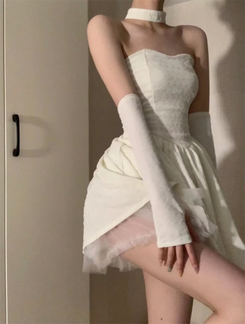 純粋な欲望ホットガール気質ワンショルダーチューブトップドレスの女性の夏 2022 新しいメッシュメッシュとウエスト A ラインスカート サマー 夏物 Aライン ステッチ 0921983673743253