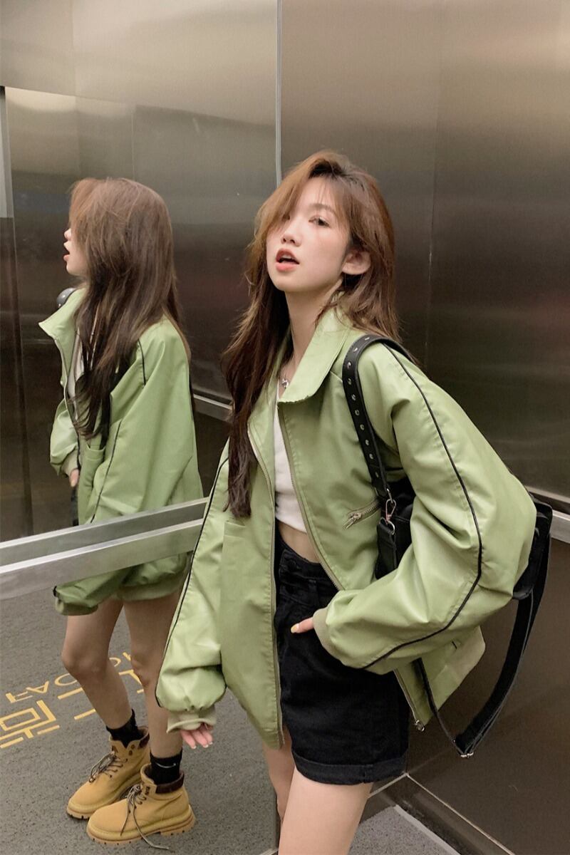 アメリカンレトロデザインニッチレザージャケット女性の春と秋2023新しいルーズカジュアル長袖ジャケットトップス ロング スプリング 春物 オータム 秋物 09219603467363