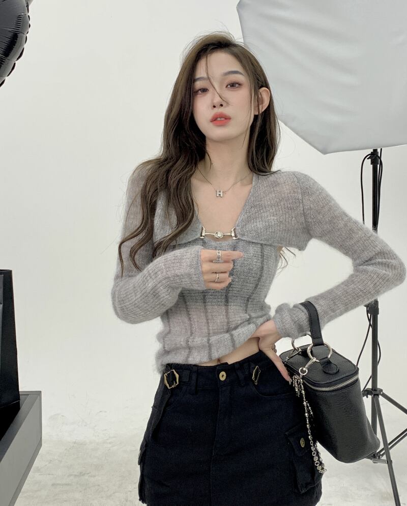 ホットデザインセンスニットスーツ女性 2023 春の新作模造モヘアサスペンダーショートショール 2 点セット潮 スプリング 春物 0921925471758021